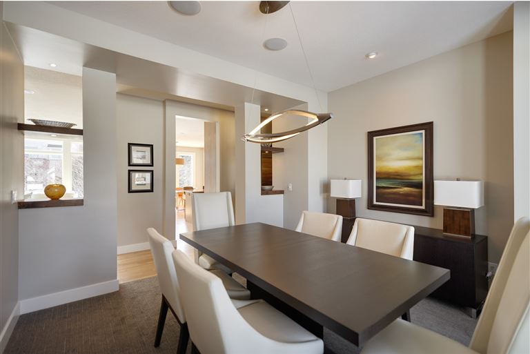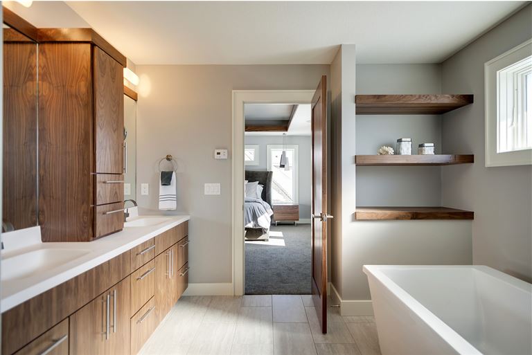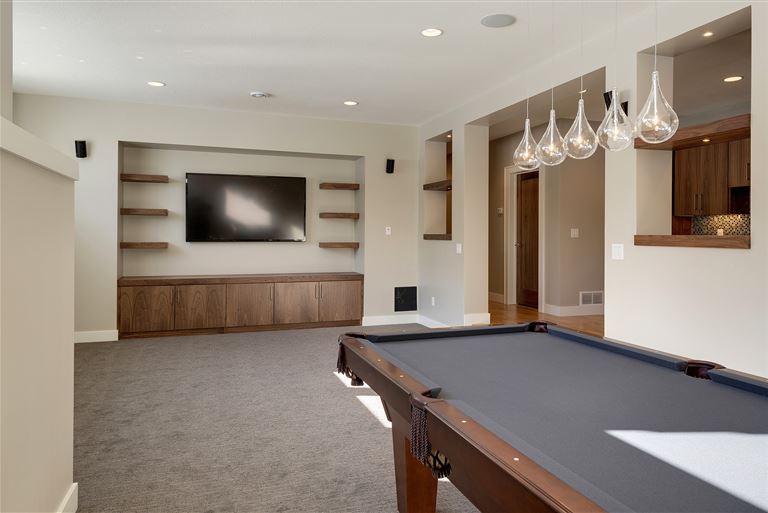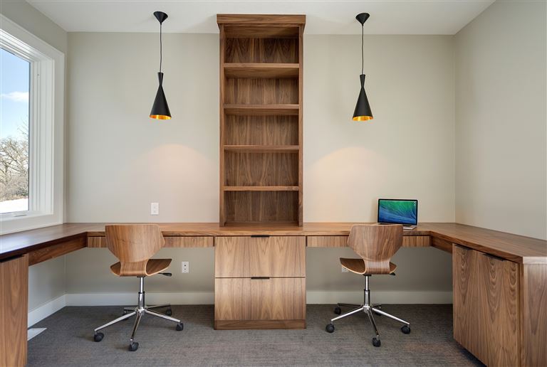 This modern and functional home is the perfect place for remote working or running a business. With a dedicated home office, complete with built-in shelving to store business items, the homeowners created a professional atmosphere to stay productive. With plenty of natural light, ample space, and a cozy atmosphere, this is the perfect place to get work done.