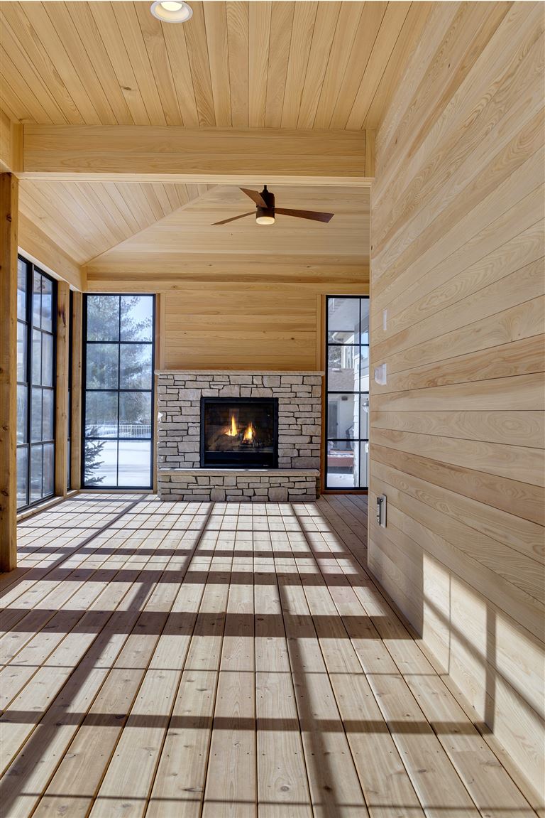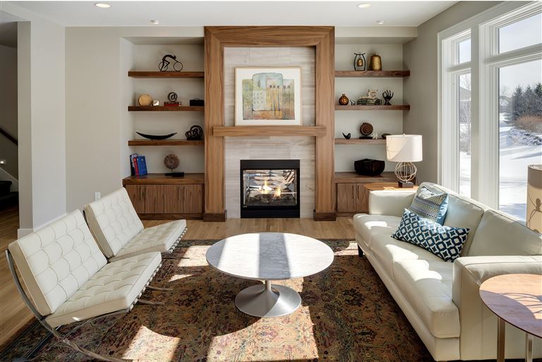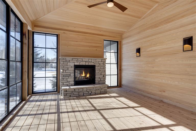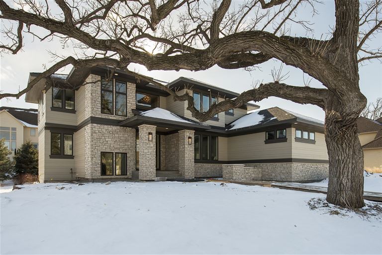 Reggie Award winning Hartman Homes presents this prairie-style, two-story with finished lookout lower level, gorgeous walnut built-ins, open foyer, and large windows throughout. This home’s walk-in pantry and spacious mud room provide organization for a busy family. The formal dining and lower level family room with wet bar provide elegant entertaining. Main floor also features white oak flooring, beautiful and unique walnut cabinetry, and white painted millwork. Retreat to the generous owners' suite with free-standing tub. Double-sided gas fireplace with stone surround adds a warm touch to the living room and office, and you'll love the screened porch with the fireplace and vaulted ceiling.