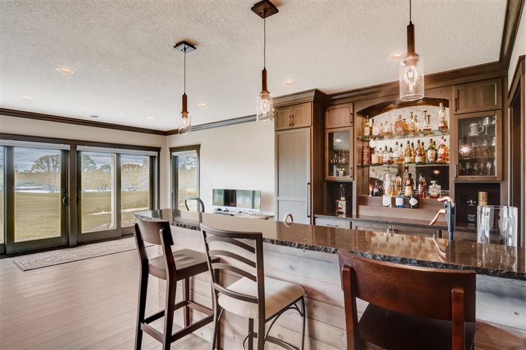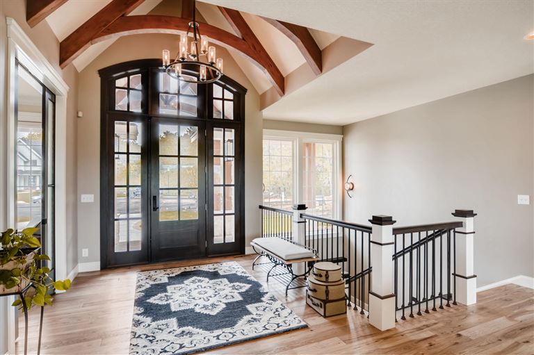 This beautiful home offers an impressive and luxurious entryway with its vaulted ceilings. Highlighted by natural light, the entryway makes an immediate statement of grandeur and elegance. The spacious interior strengthens the feeling of luxury, and features amenities such as a wine cellar and upgraded kitchen. This home is the perfect combination of beauty and comfort.