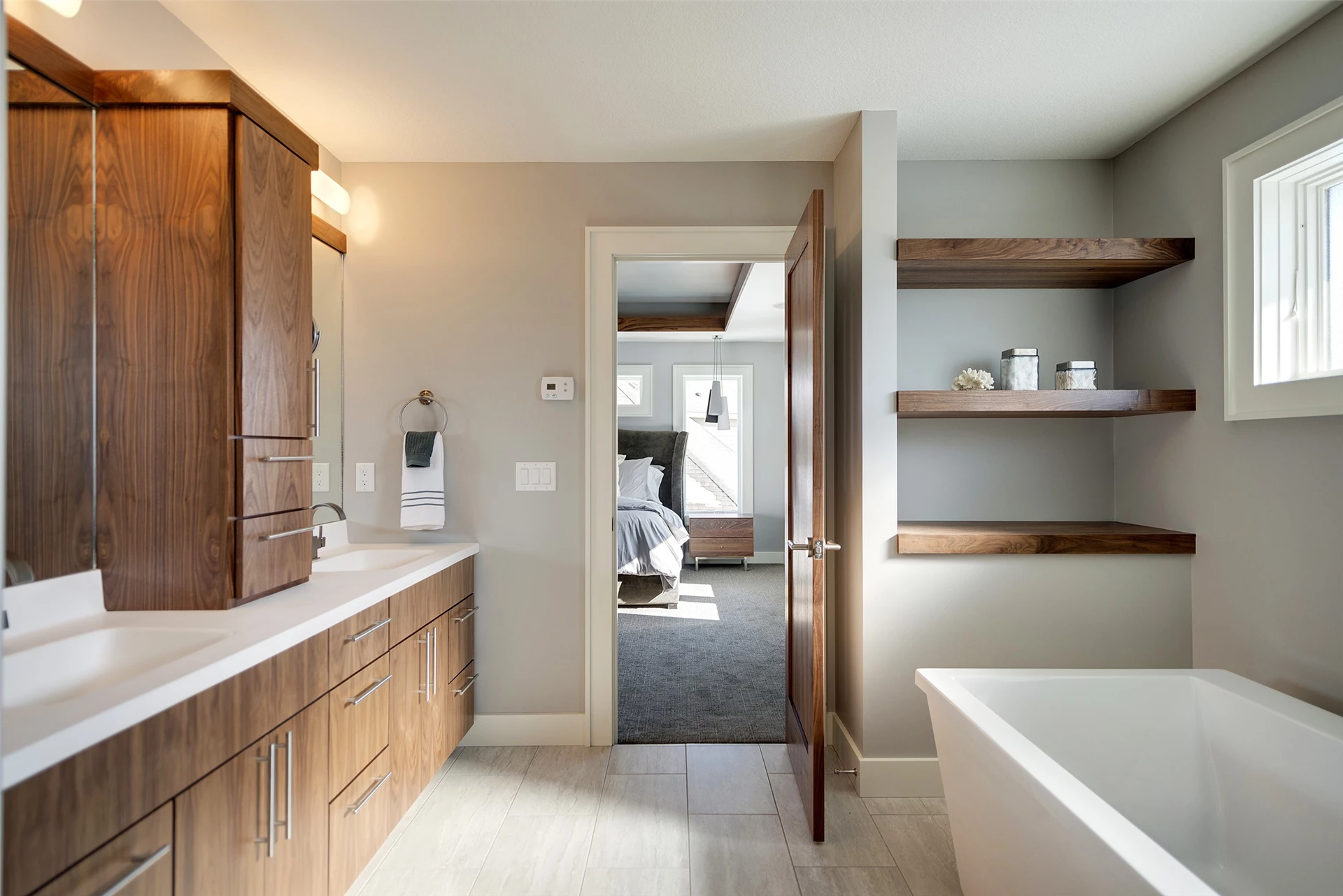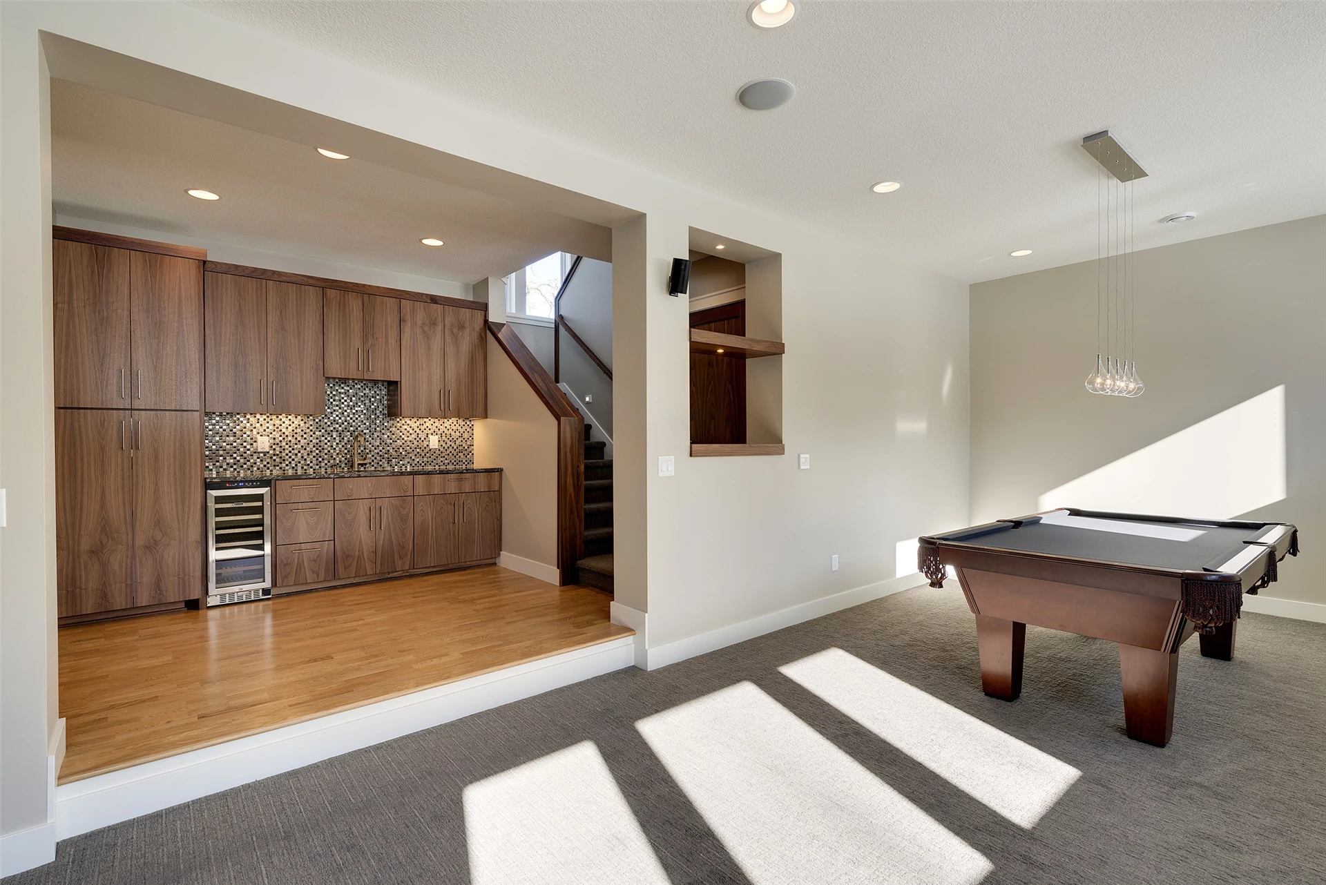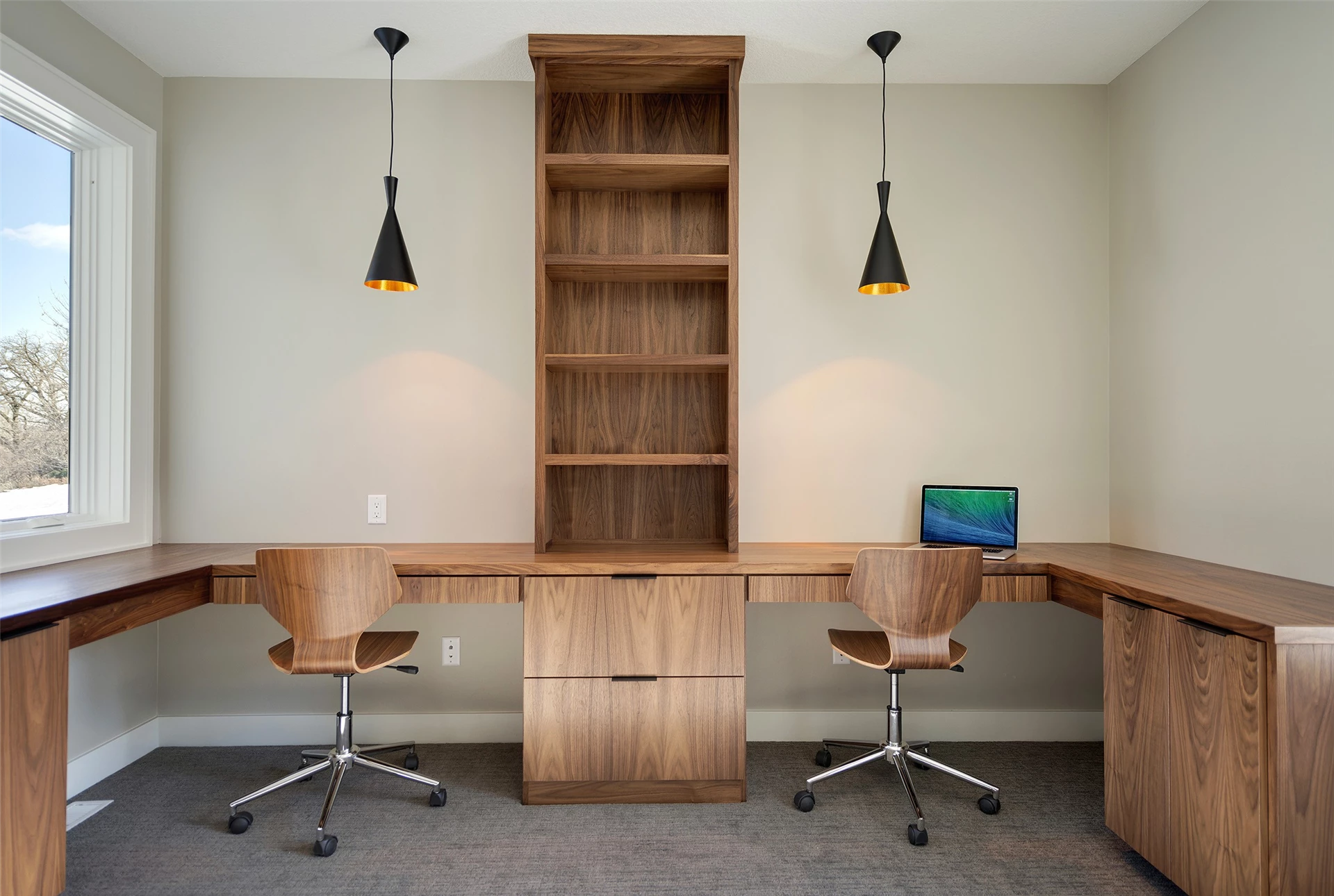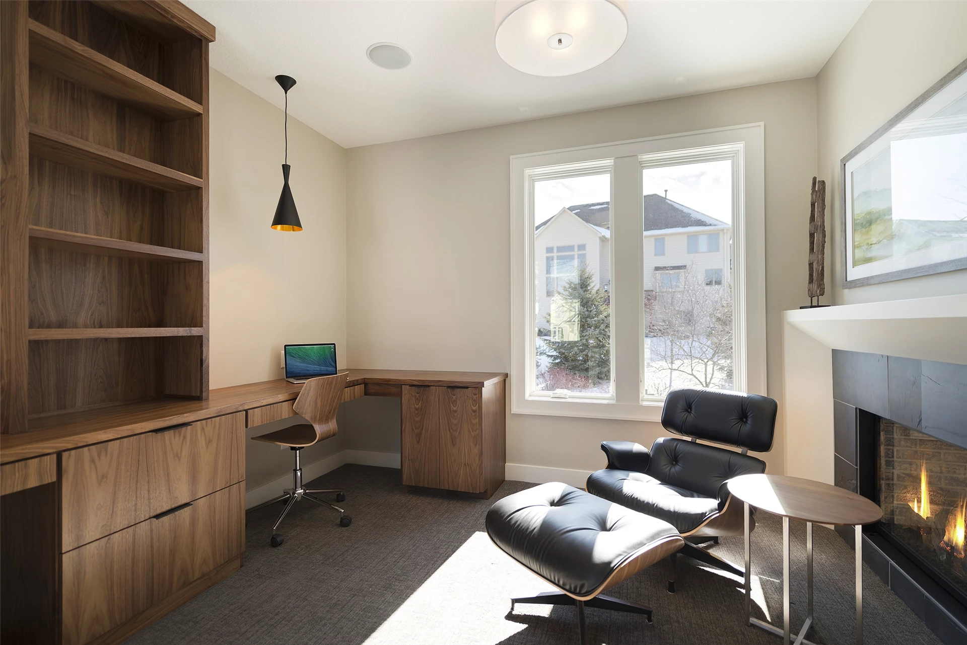 This modern and functional home is the perfect place for remote working or running a business. With a dedicated home office, complete with built-in shelving to store business items, the homeowners created a professional atmosphere to stay productive. With plenty of natural light, ample space, and a cozy atmosphere, this is the perfect place to get work done.