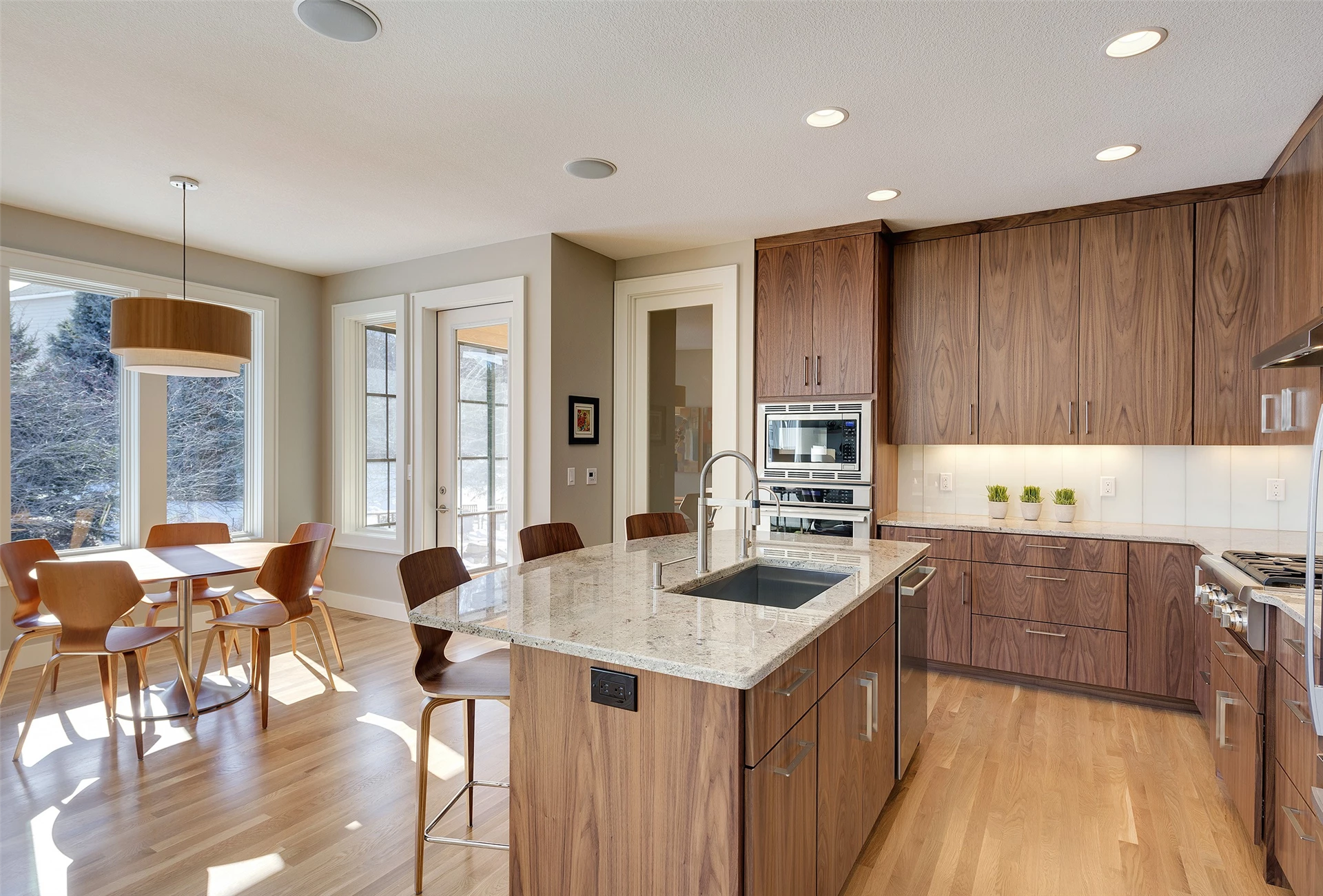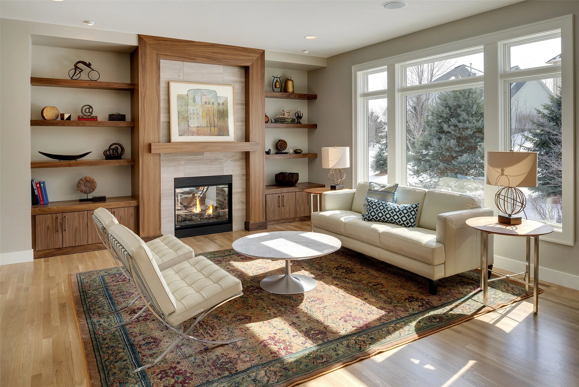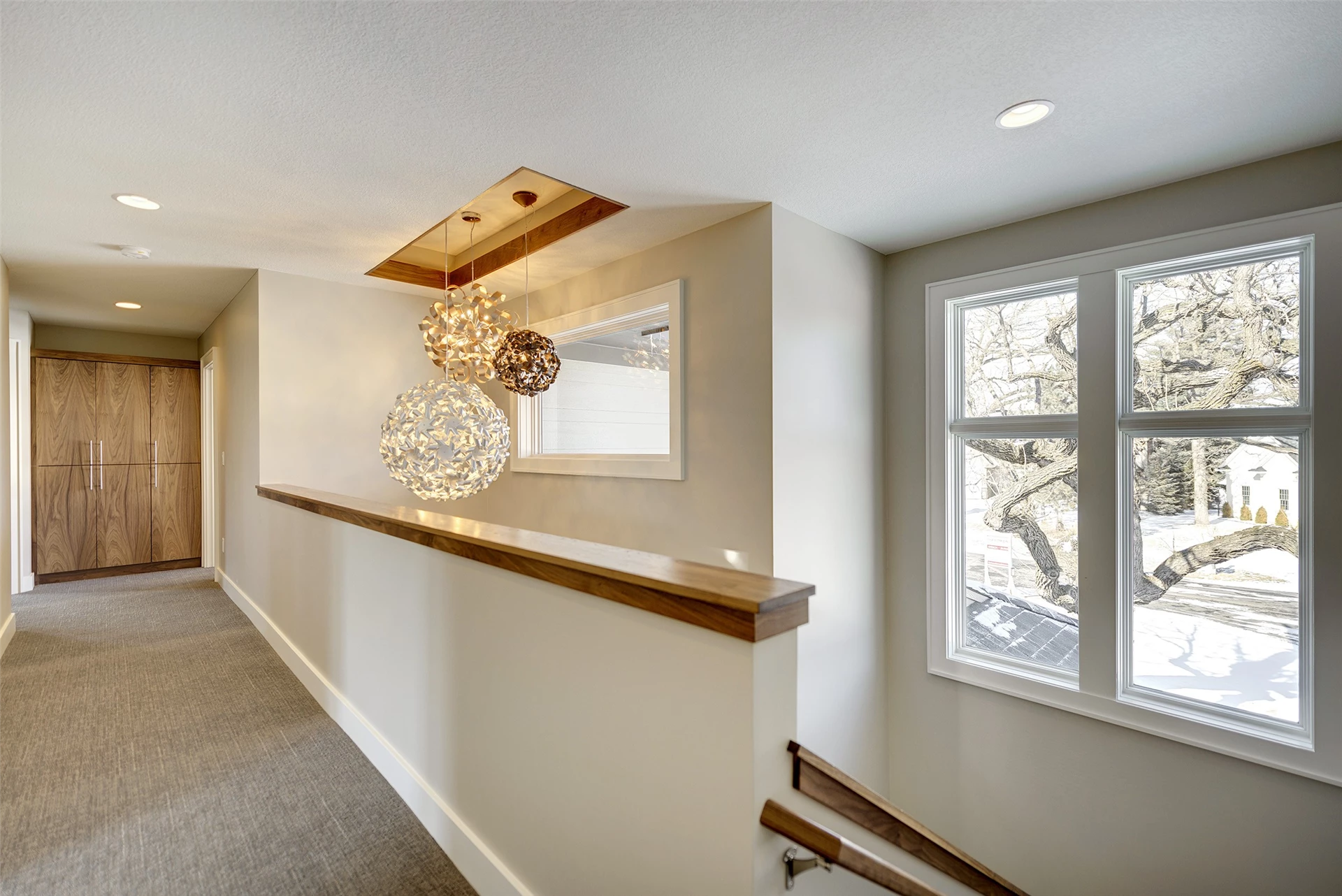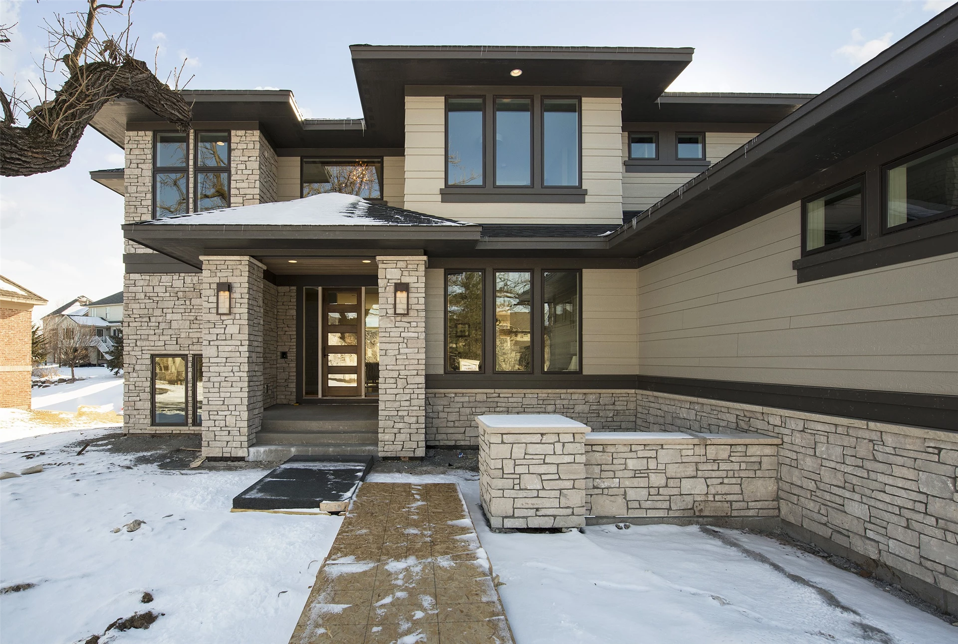 Reggie Award winning Hartman Homes presents this prairie-style, two-story with finished lookout lower level, gorgeous walnut built-ins, open foyer, and large windows throughout. This home’s walk-in pantry and spacious mud room provide organization for a busy family. The formal dining and lower level family room with wet bar provide elegant entertaining. Main floor also features white oak flooring, beautiful and unique walnut cabinetry, and white painted millwork. Retreat to the generous owners' suite with free-standing tub. Double-sided gas fireplace with stone surround adds a warm touch to the living room and office, and you'll love the screened porch with the fireplace and vaulted ceiling.