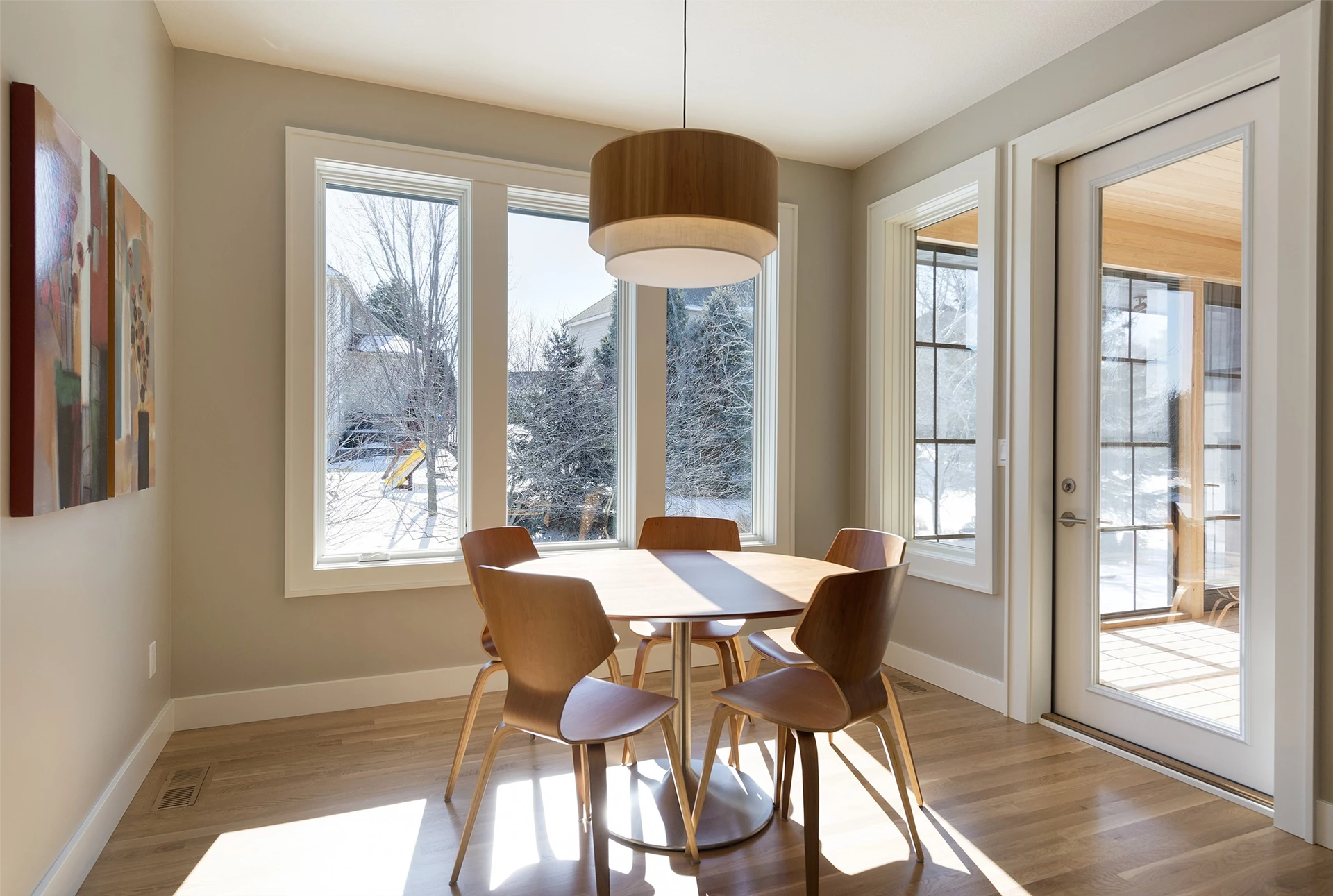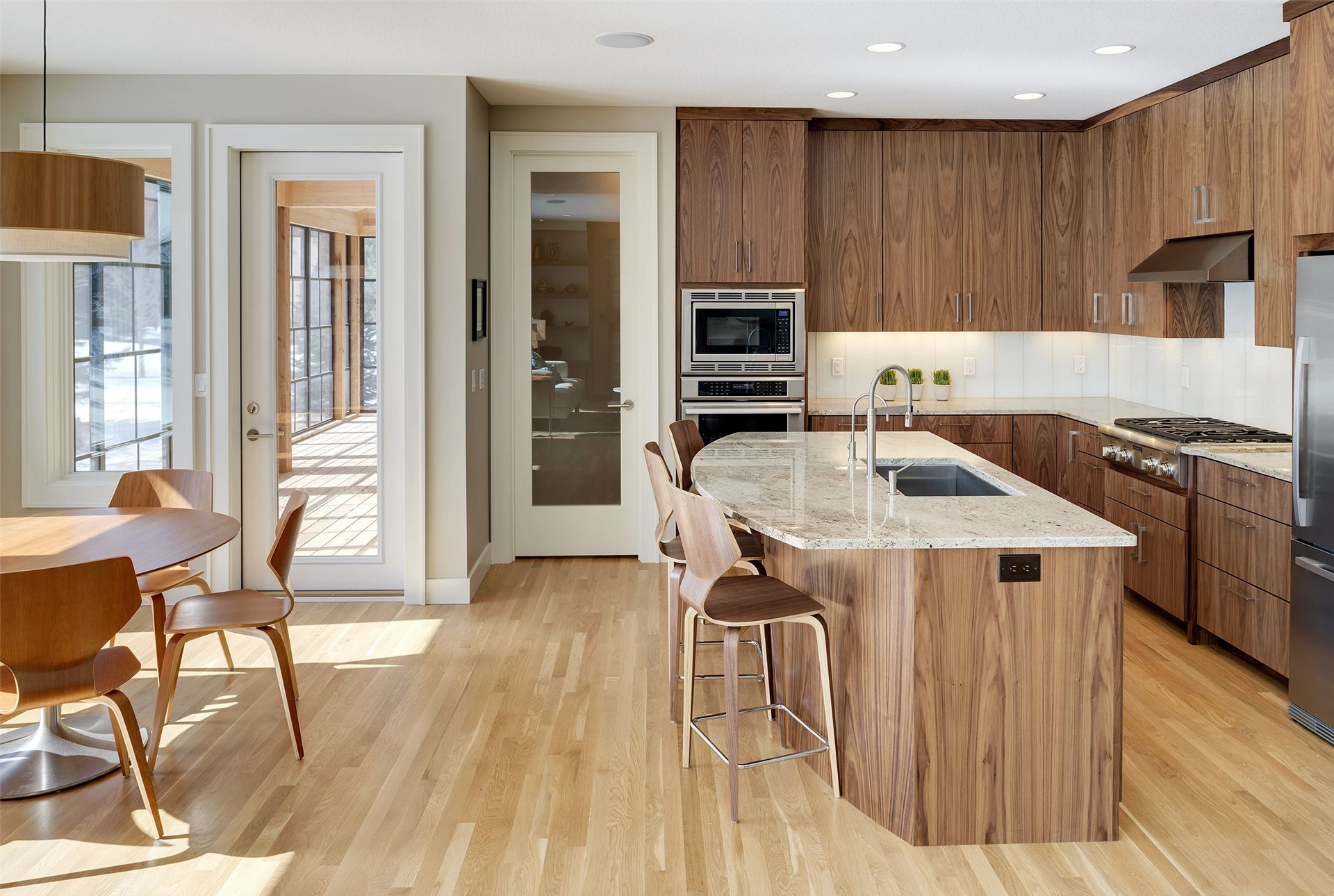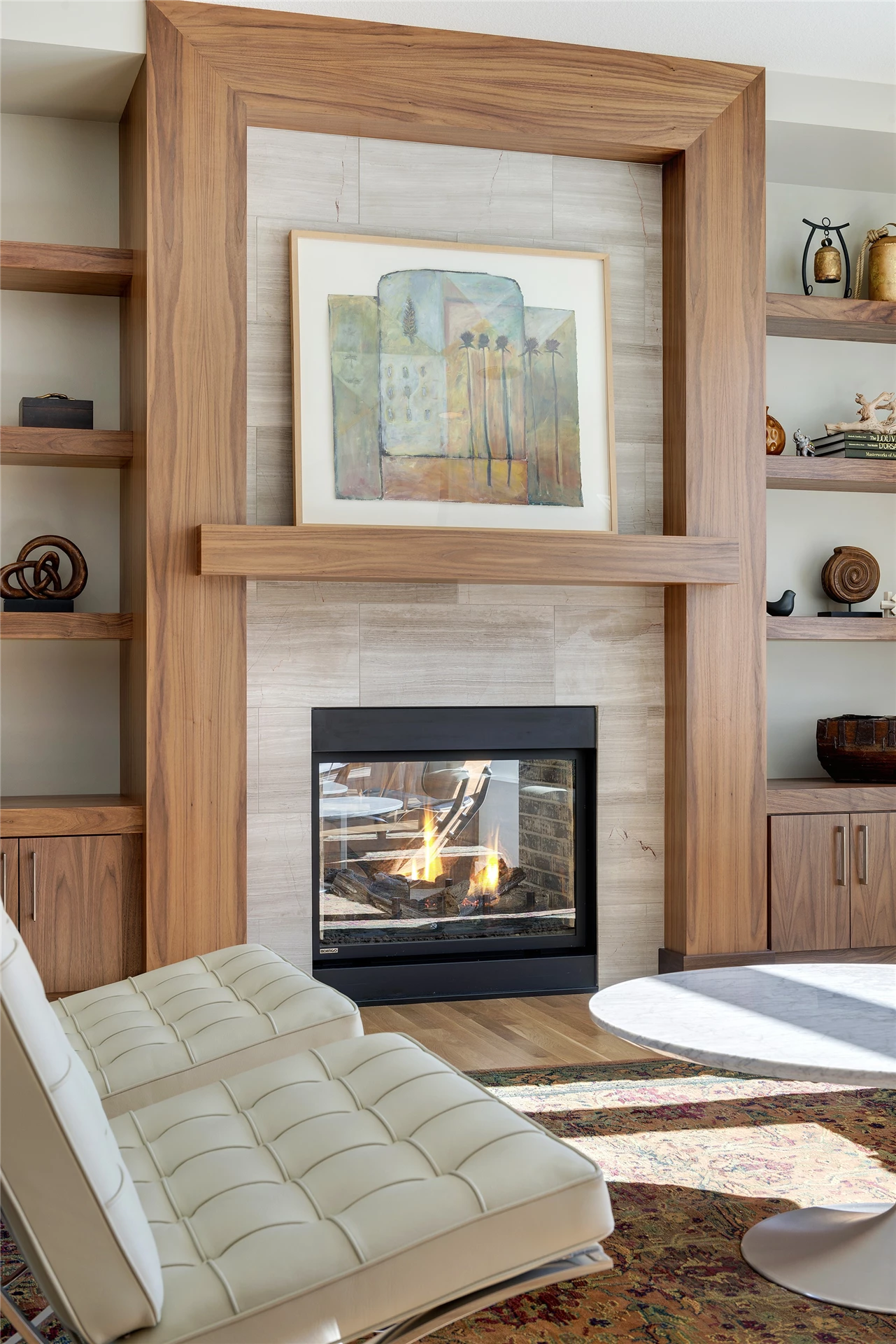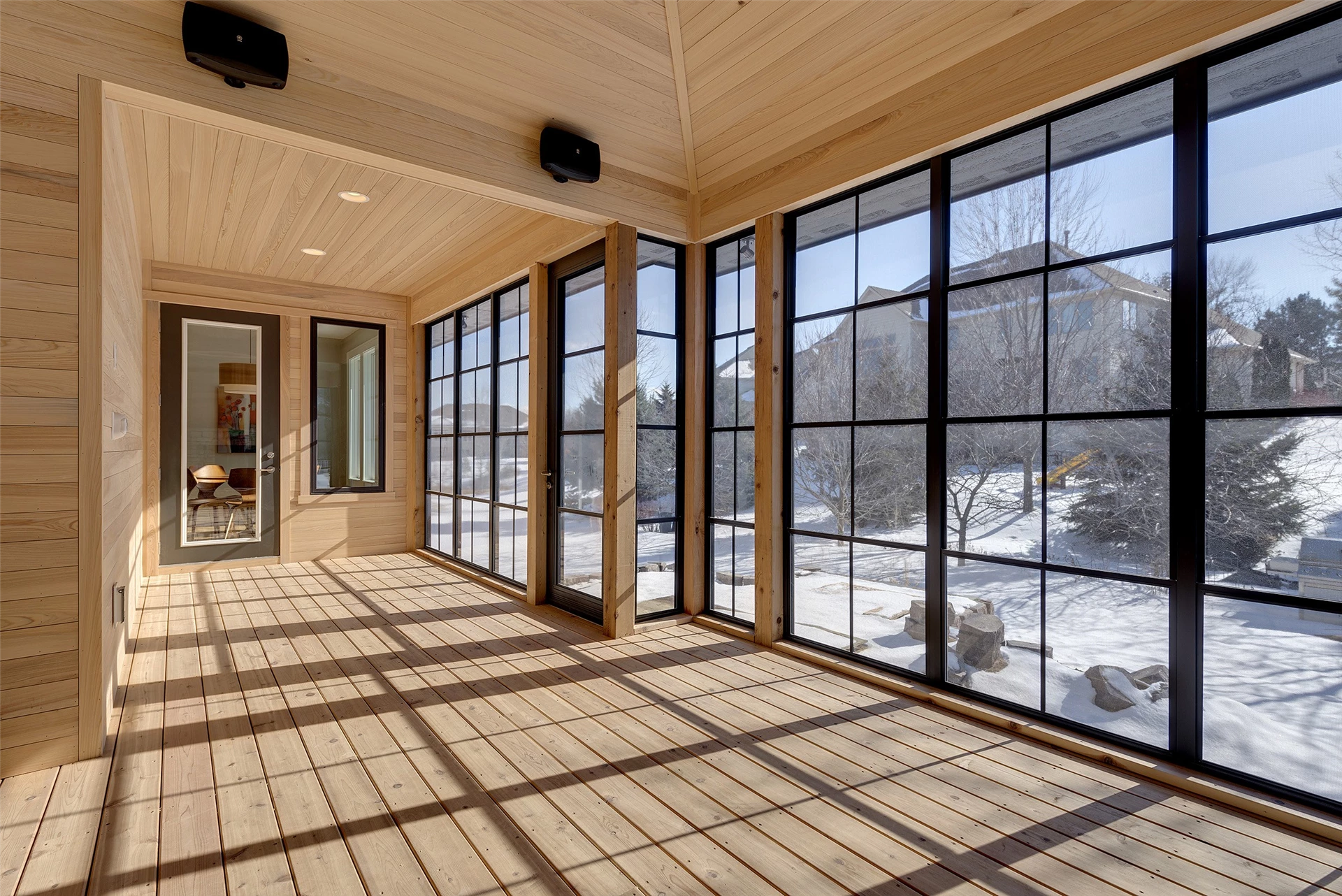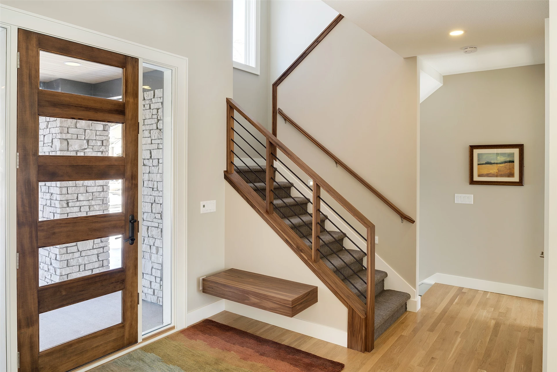 Reggie Award winning Hartman Homes presents this prairie-style, two-story with finished lookout lower level, gorgeous walnut built-ins, open foyer, and large windows throughout. This home’s walk-in pantry and spacious mud room provide organization for a busy family. The formal dining and lower level family room with wet bar provide elegant entertaining. Main floor also features white oak flooring, beautiful and unique walnut cabinetry, and white painted millwork. Retreat to the generous owners' suite with free-standing tub. Double-sided gas fireplace with stone surround adds a warm touch to the living room and office, and you'll love the screened porch with the fireplace and vaulted ceiling.