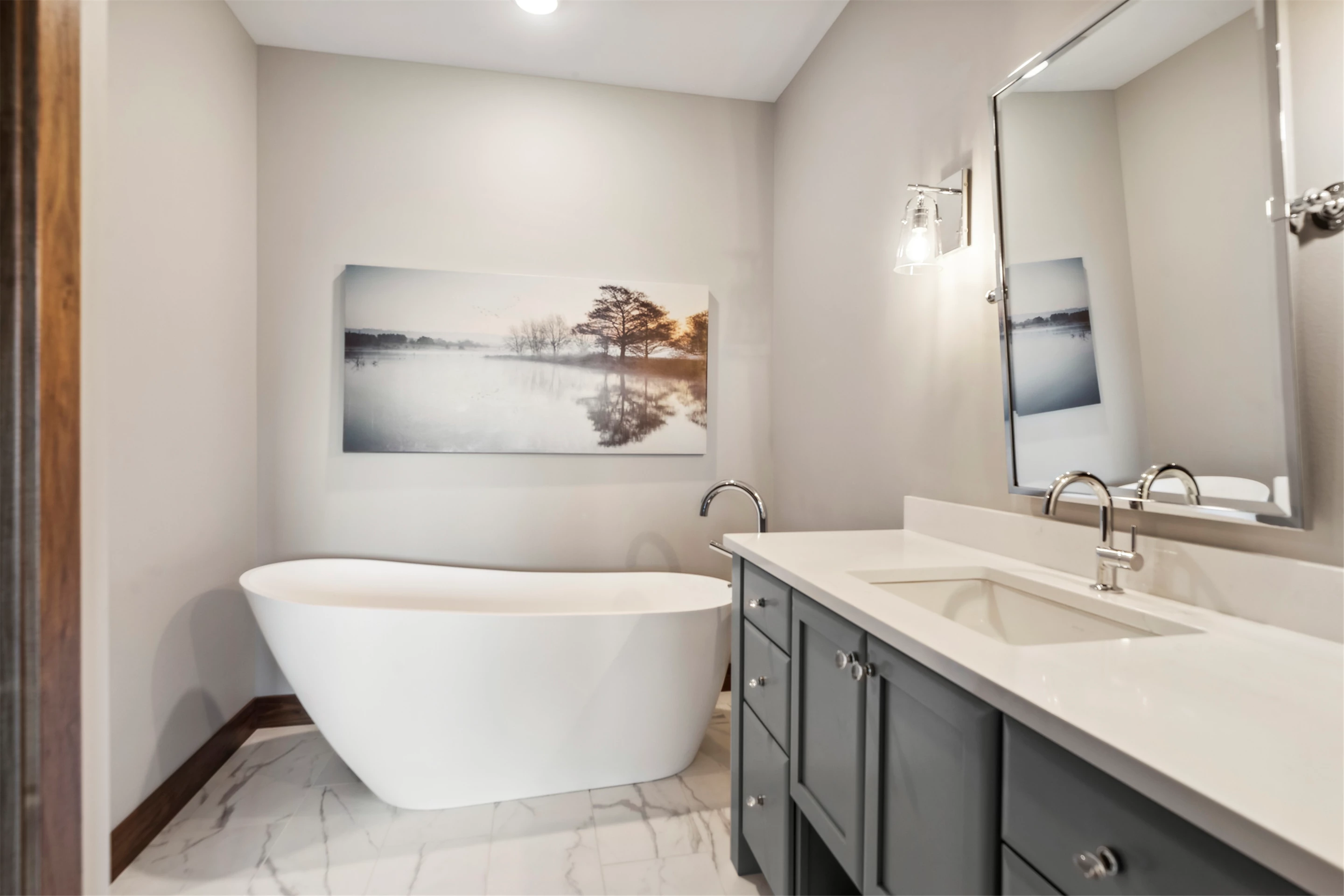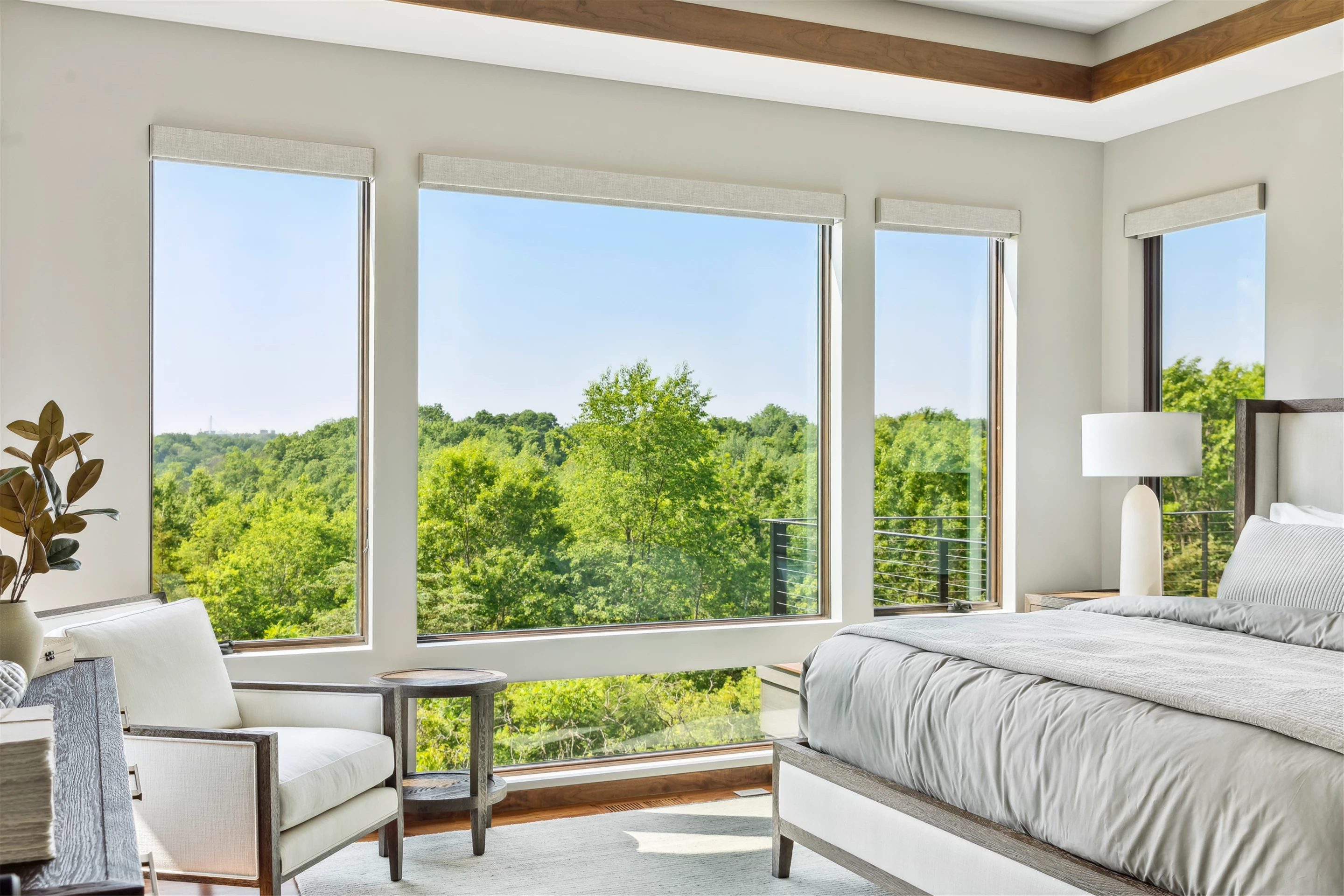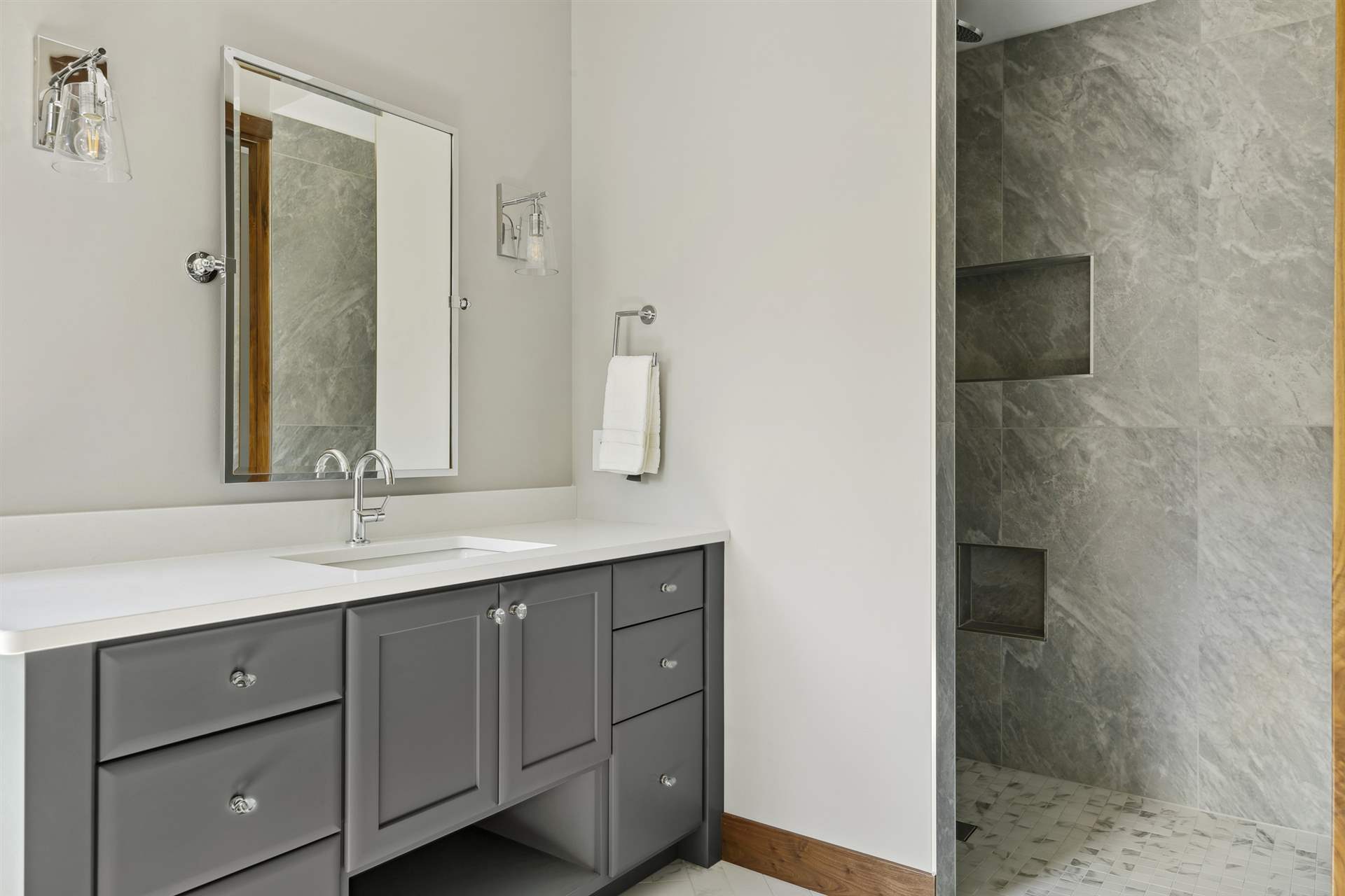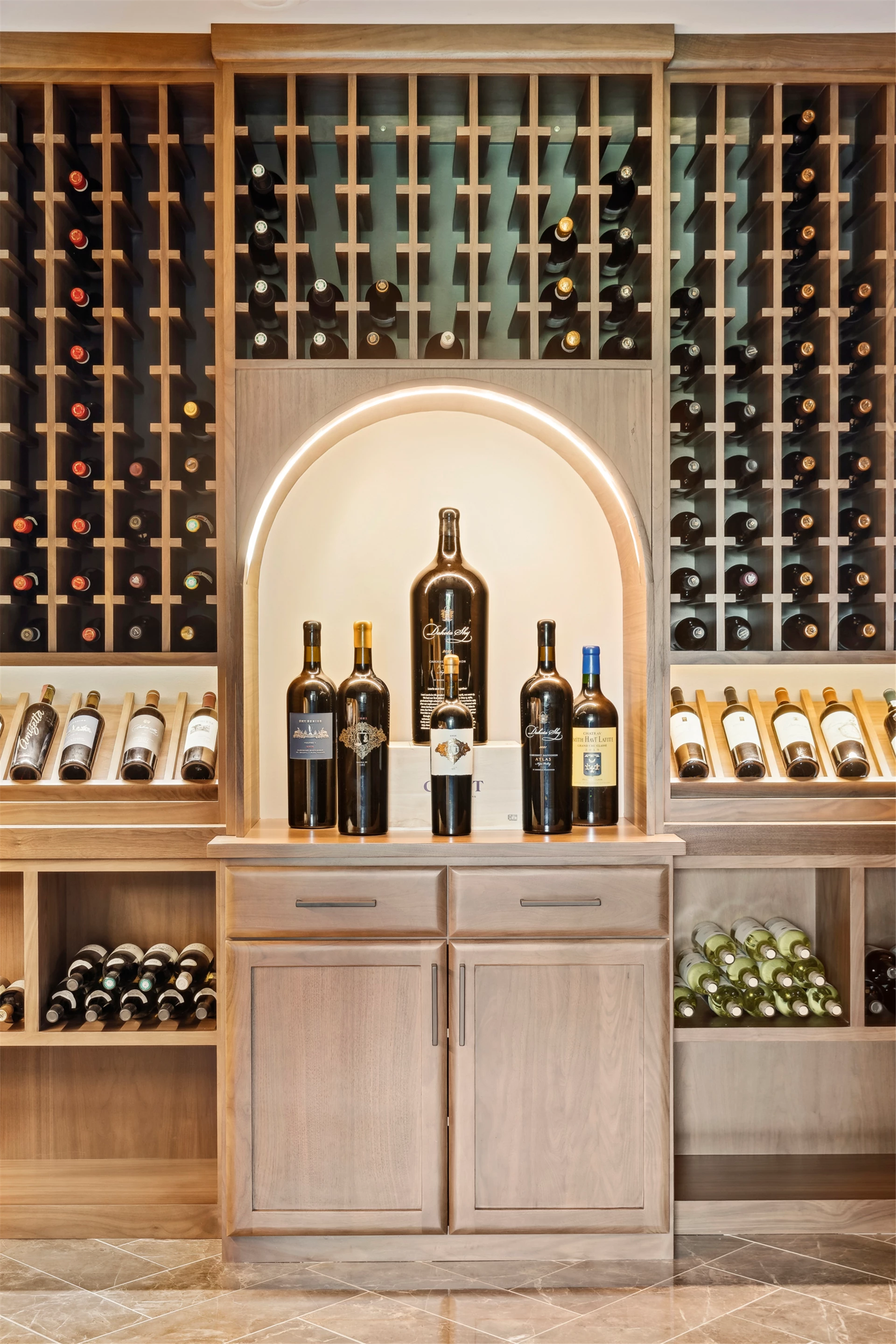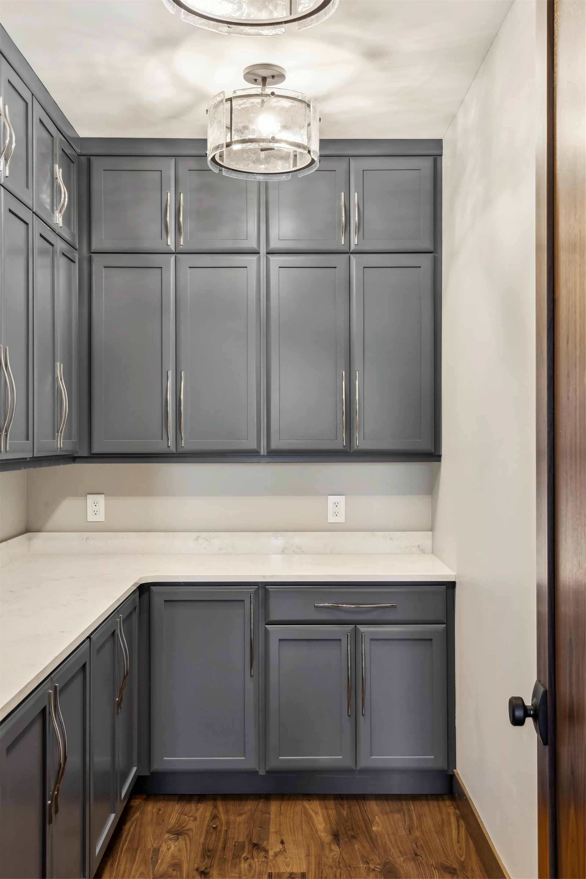 Come see the Enchanted Forest Chalet during the 2023 Artisan Home Tour! Situated on 315 acres of wooded land on the bluffs of the Mississippi River, this six-bedroom, seven-bathroom, 8,119-square-foot new build in Prescott, Wisconsin, is a private escape with quick access to the Twin Cities. The Enchanted Forest Chalet comes to life with exterior materials that include James Hardie Black Ash and Aged Pewter siding; a cedar vaulted entry with decorative brackets and truss work; and a stone-blend board and batten. Inside, this aesthetic translates to arched windows, walnut flooring and doors, and vaulted ceilings in the great room and kitchen, finished with walnut cabinetry and natural quartzite countertops. The primary suite on the main level features a beamed box-vaulted ceiling, a stone-clad gas fireplace, and a private deck. The bath is a private oasis, with a freestanding tub and walk-in shower. The custom walnut closet system connects the laundry achieving a walk-through layout. There are ample opportunities to appreciate the property’s streams and hillsides, from a four-season porch with a gas fireplace and stone surround to the paver patio with space for al fresco dining and quiet conversations around a wood-burning fireplace.
