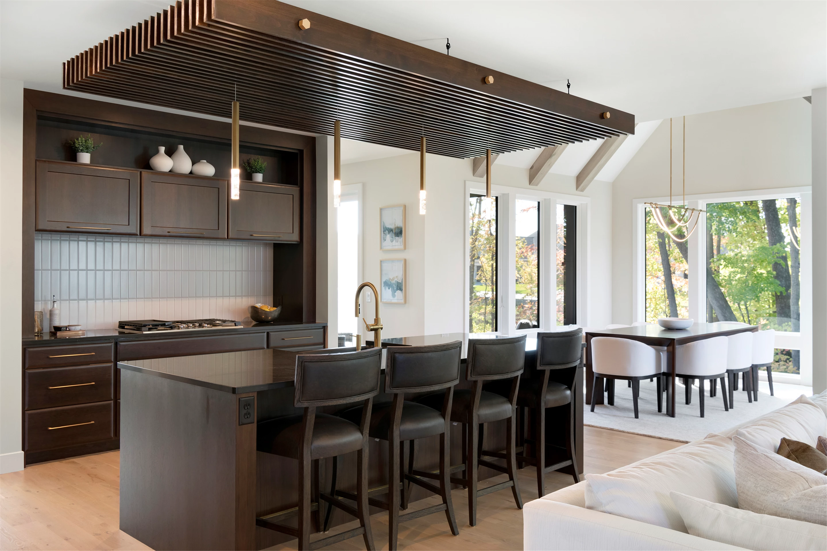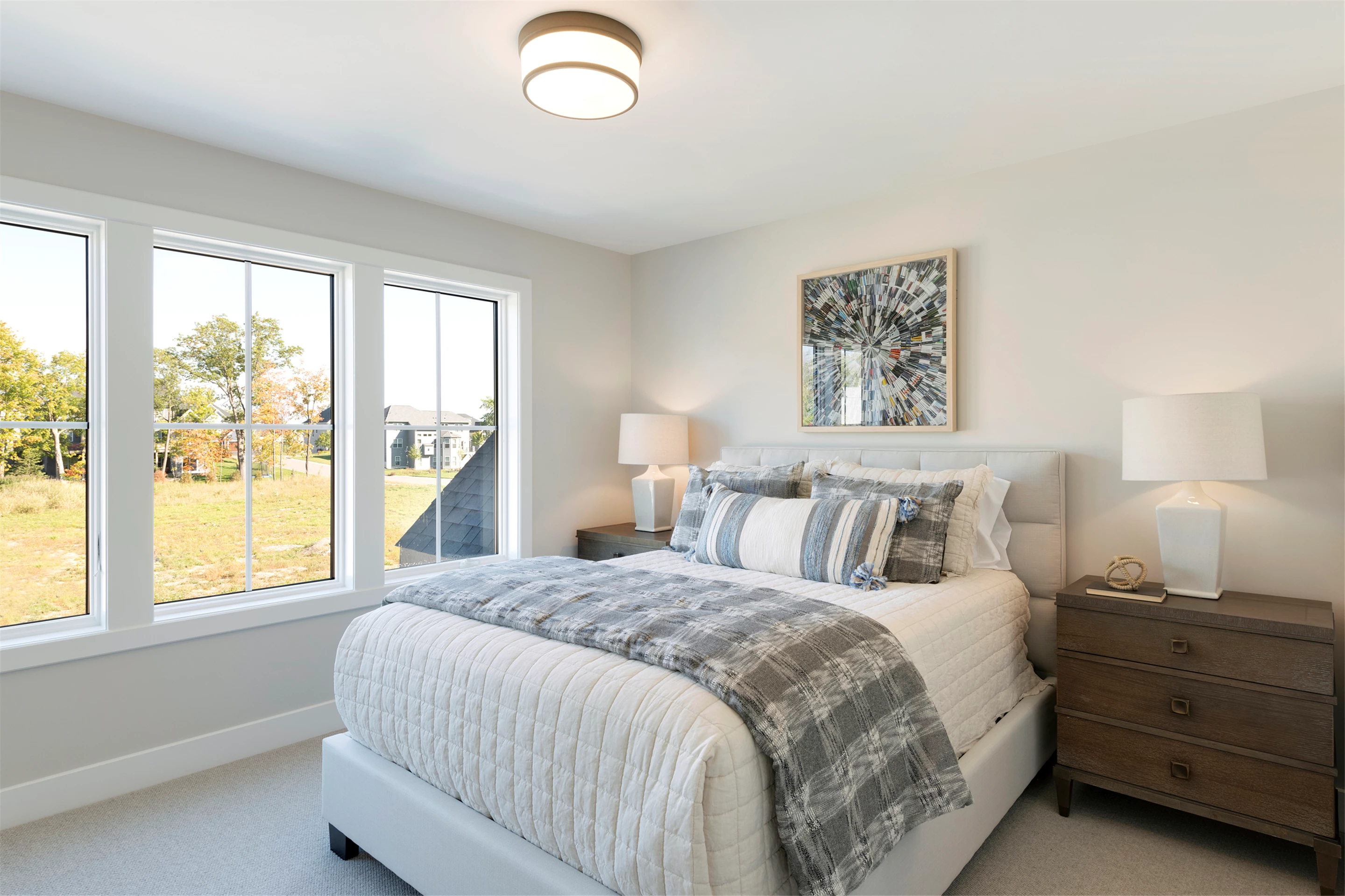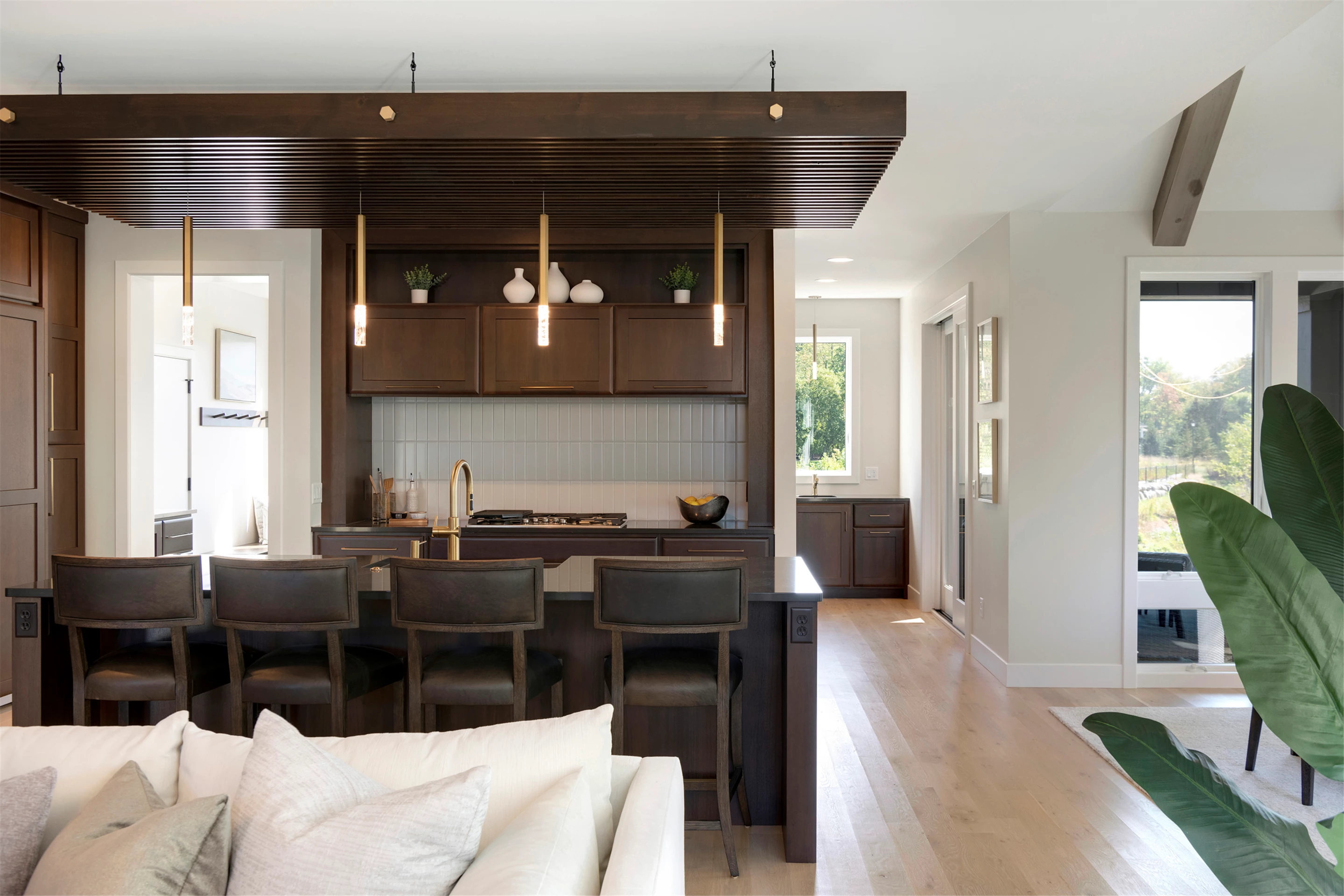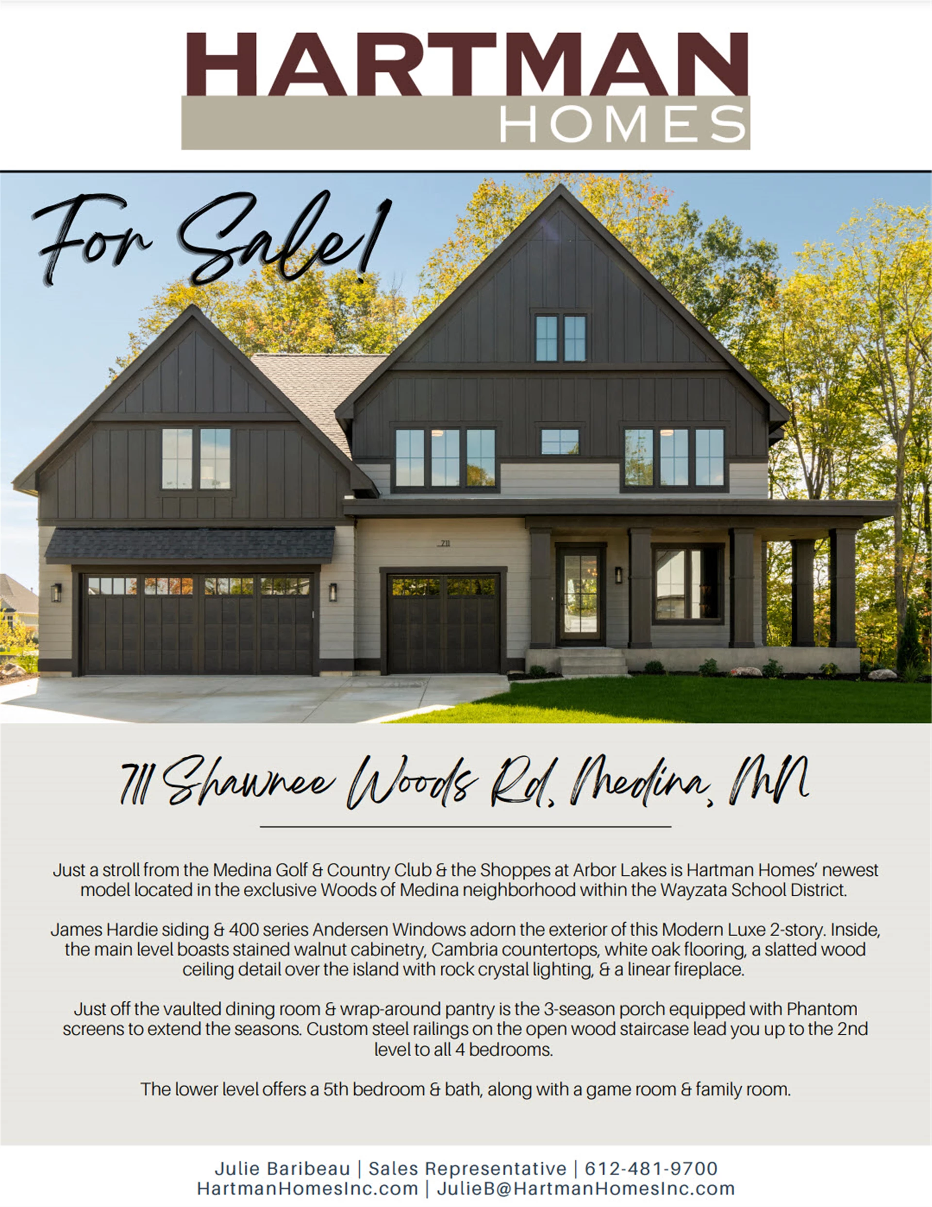 FOR SALE! This home is available and move-in ready. We invite you to come walk through and see all it has to offer this summer from June 9th until June 25th! It is open each weekend on Friday-Sunday, from noon to 6 PM. Just a stroll from the Medina Golf and Country Club and the Shoppes at Arbor Lakes is Hartman Homes’ newest model located in the exclusive Woods of Medina neighborhood within the Wayzata School District. James Hardie siding and 400 series Andersen Windows adorn the exterior of this modern luxe two-story. Inside, the main level boasts stained walnut cabinetry, Cambria countertops, white oak flooring, a slatted wood ceiling detail over the island with rock crystal lighting, and a linear fireplace. Just off the vaulted dining room and wrap-around pantry is the 3-season porch equipped with Phantom screens to extend the seasons. Custom steel railings on the open wood staircase lead you up to the 2nd level to 4 bedrooms. The lower level features both an entertaining and executive vibe with a fully equipped wet bar, game room, and media room, along with a 5th bedroom and bathroom.