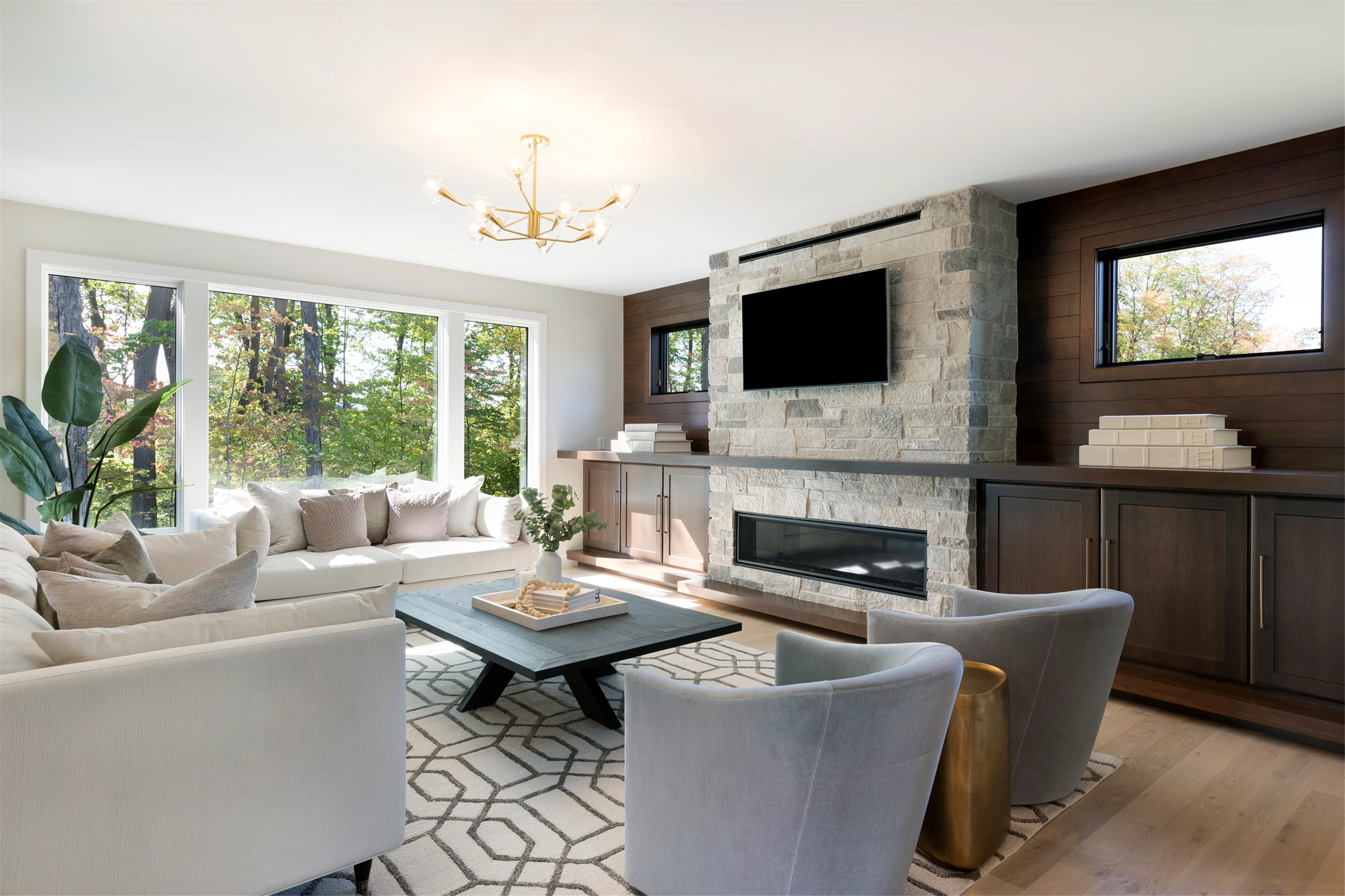This home offers an inviting presence with its beautiful exterior. It features a beautiful chimney that adds a touch of timeless elegance. Many desirable features, such as a four-season porch, perfectly complement the picturesque setting. It promises an unforgettable experience with its classic and luxurious appeal.