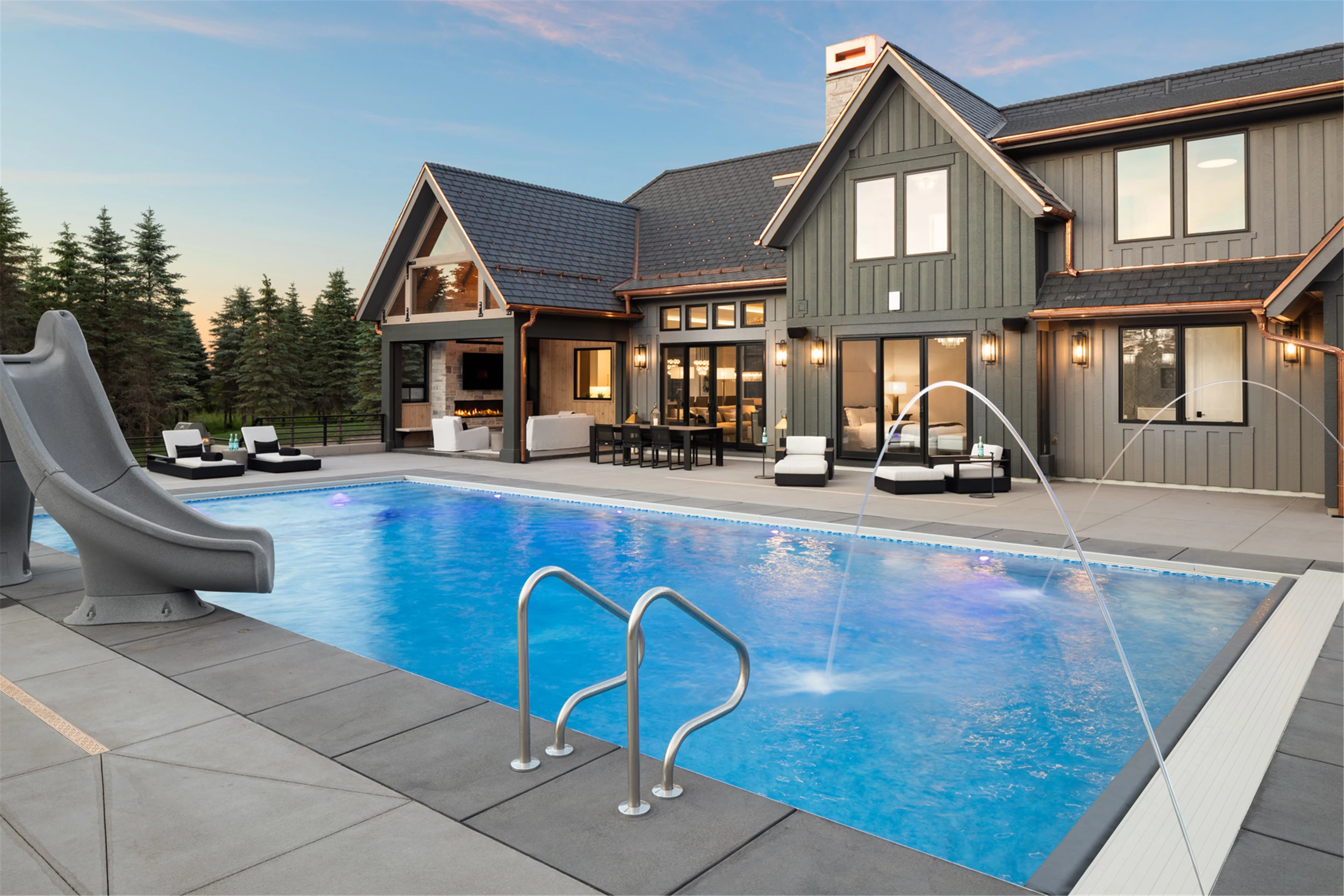 The Modern Luxe on Majestic Pines is a one-of-a-kind 4-bedroom, 4-bathroom home built in 2021. It blends the best of 3 styles - farmhouse, contemporary, and tudor design - to create an inviting atmosphere in a modern setting. With the warm summer months comes one of the most impressive outdoor entertaining areas, complete with a pool - perfect for entertaining or just cooling off! This elegant, modern home is a guaranteed crowd-pleaser.