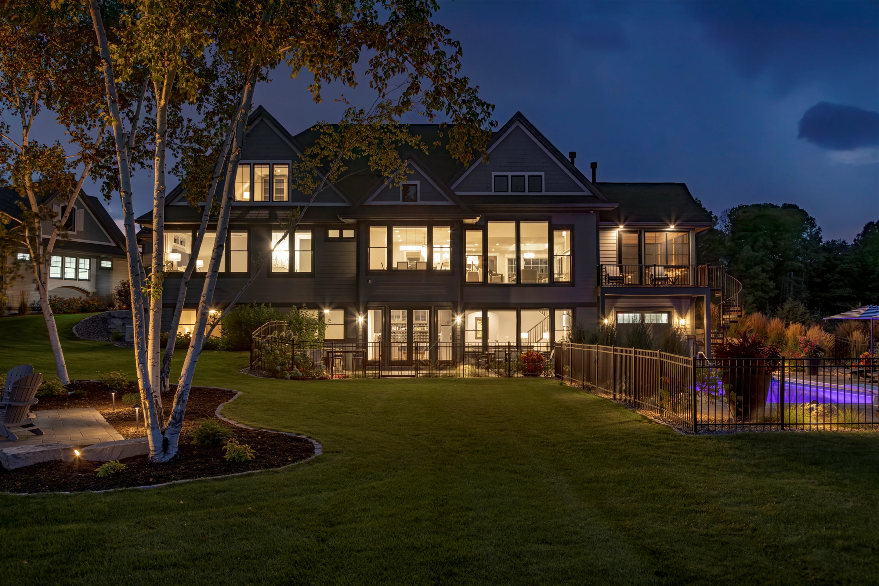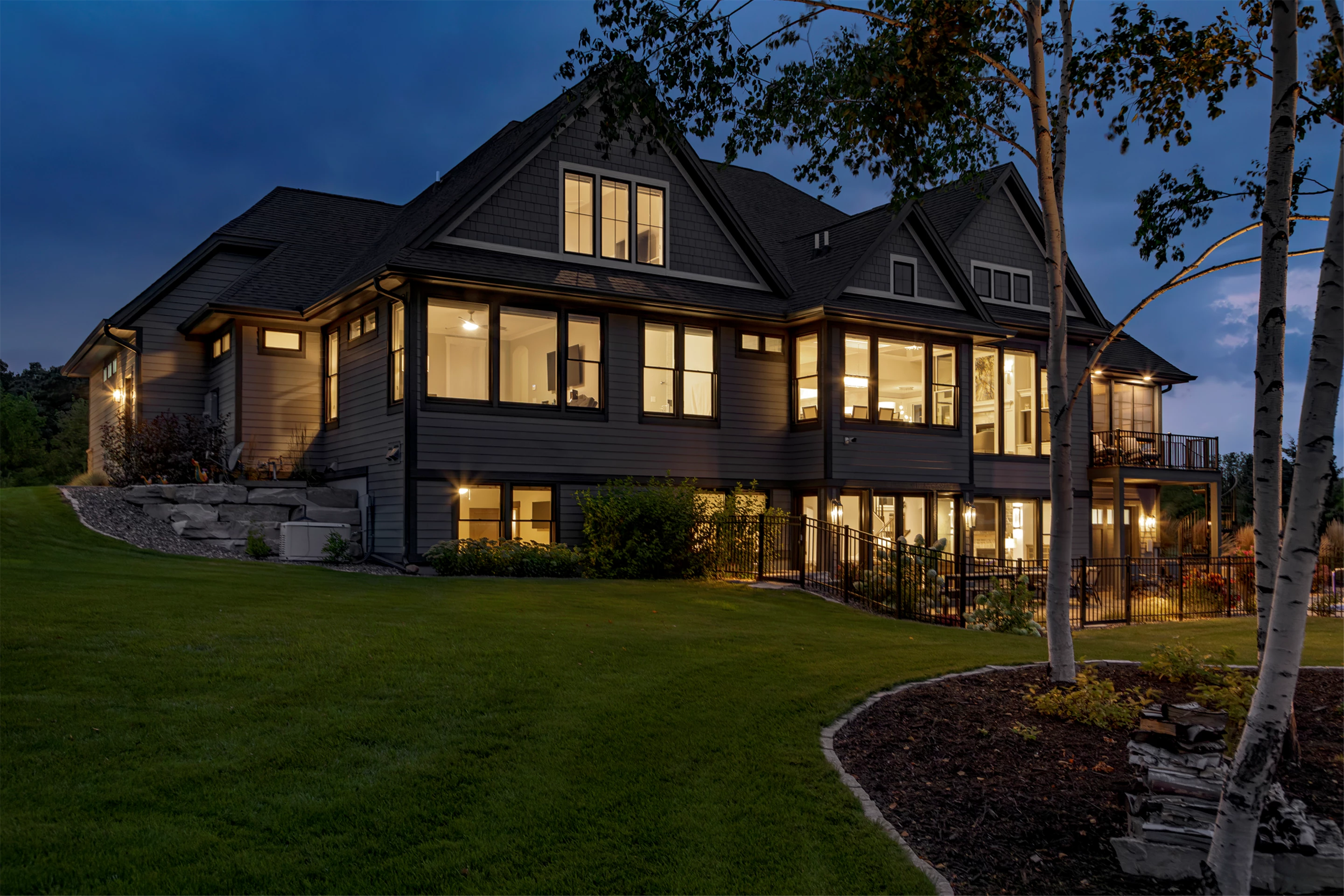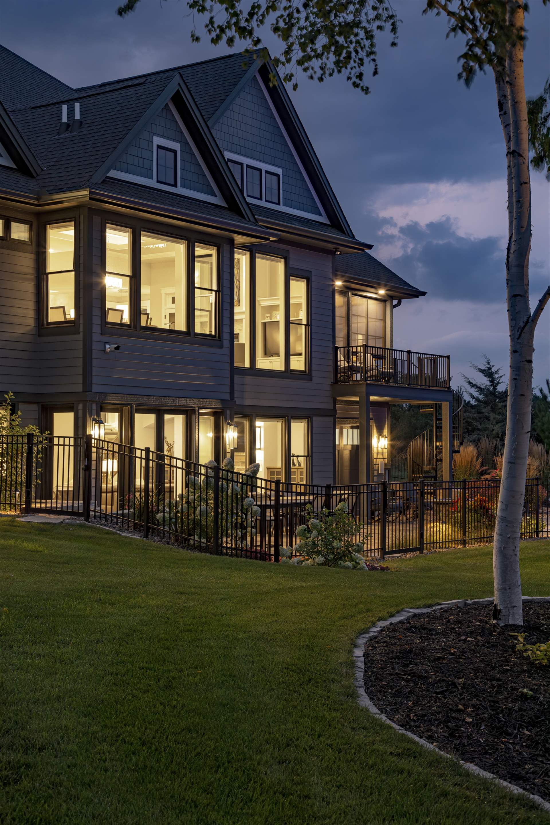 Hardie lap siding, black Andersen Windows and a barrel-vaulted front porch are showcased on the exterior. Wire-brushed maple flooring, painted cabinetry, and Cambria countertops can be found on the main level, along with unique ceiling details, stylish wall coverings, and tasteful accent lighting.