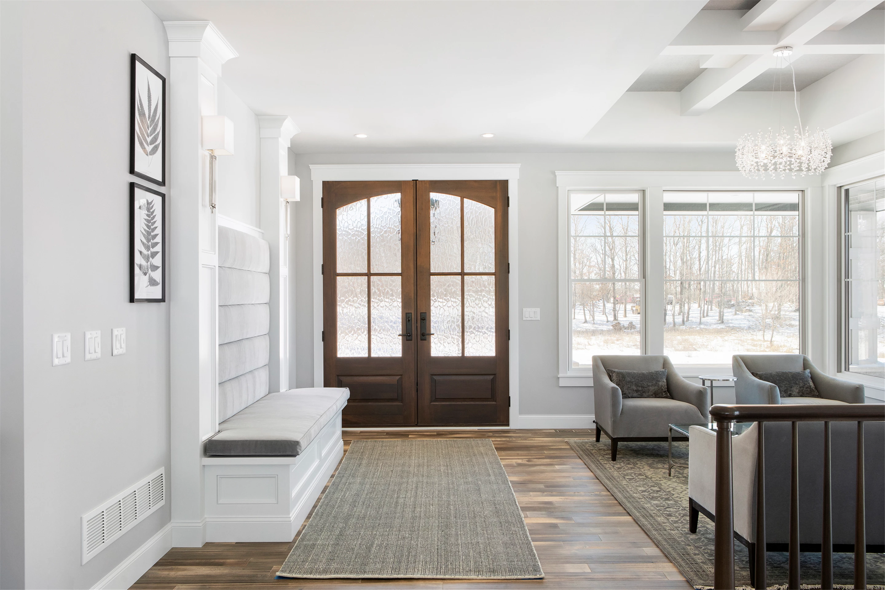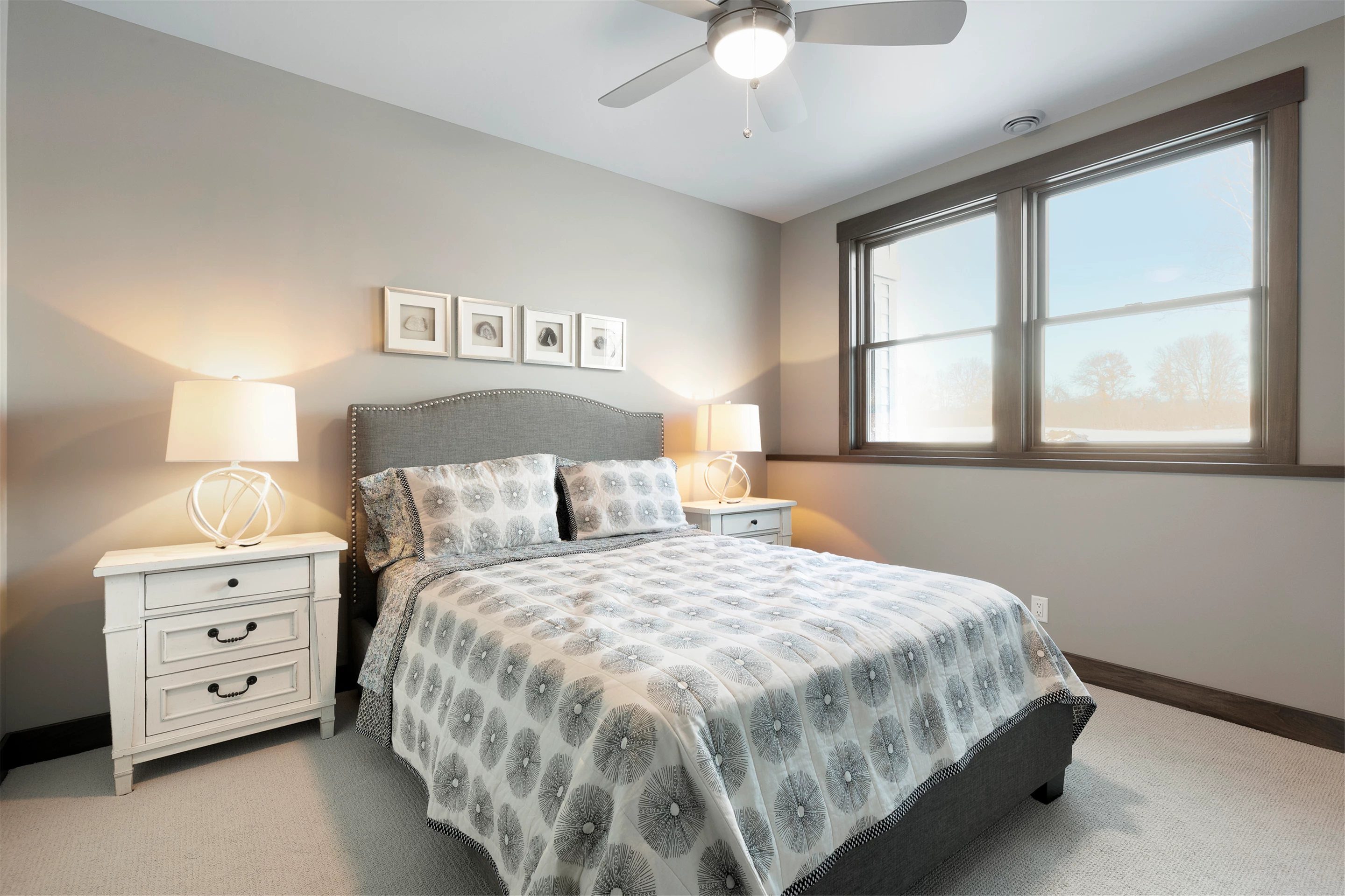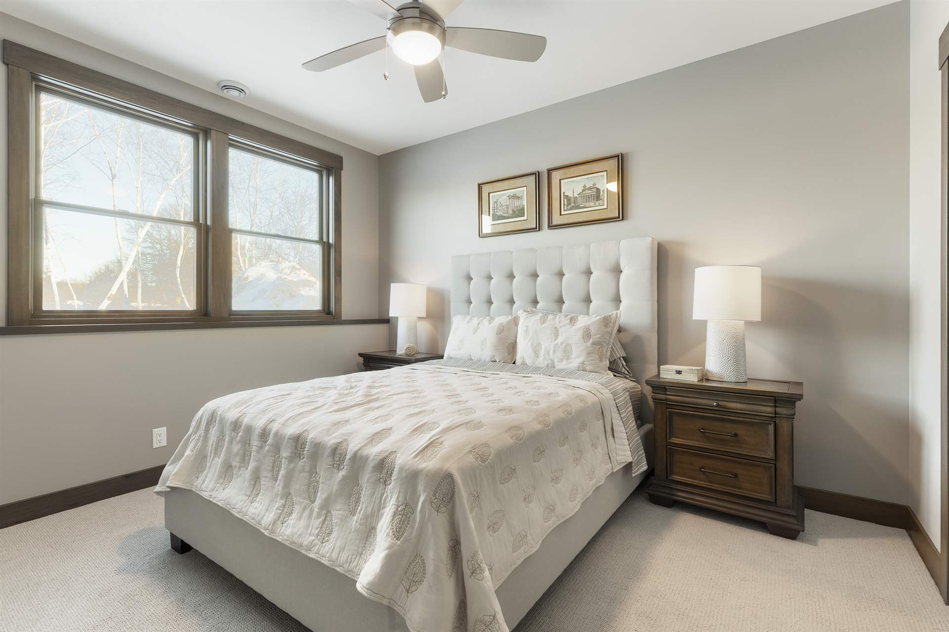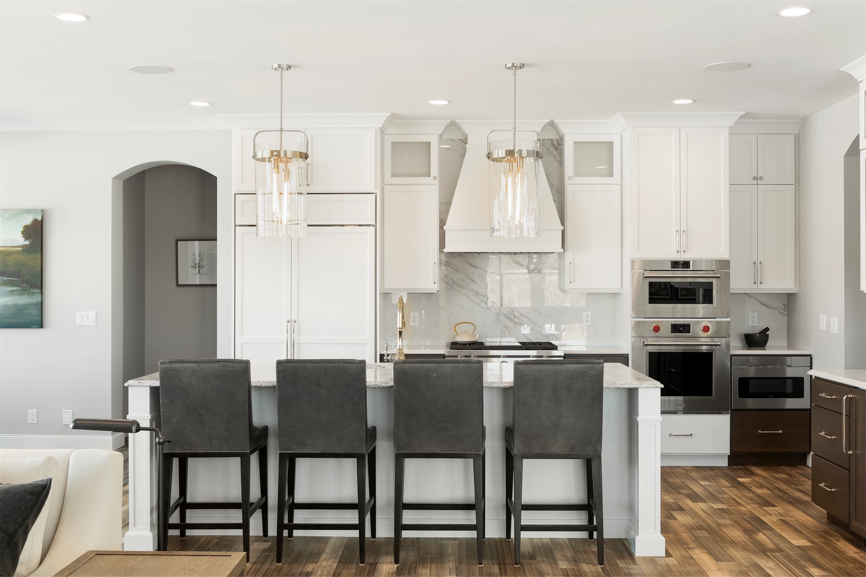 Hardie lap siding, black Andersen Windows and a barrel-vaulted front porch are showcased on the exterior. Wire-brushed maple flooring, painted cabinetry, and Cambria countertops can be found on the main level, along with unique ceiling details, stylish wall coverings, and tasteful accent lighting.