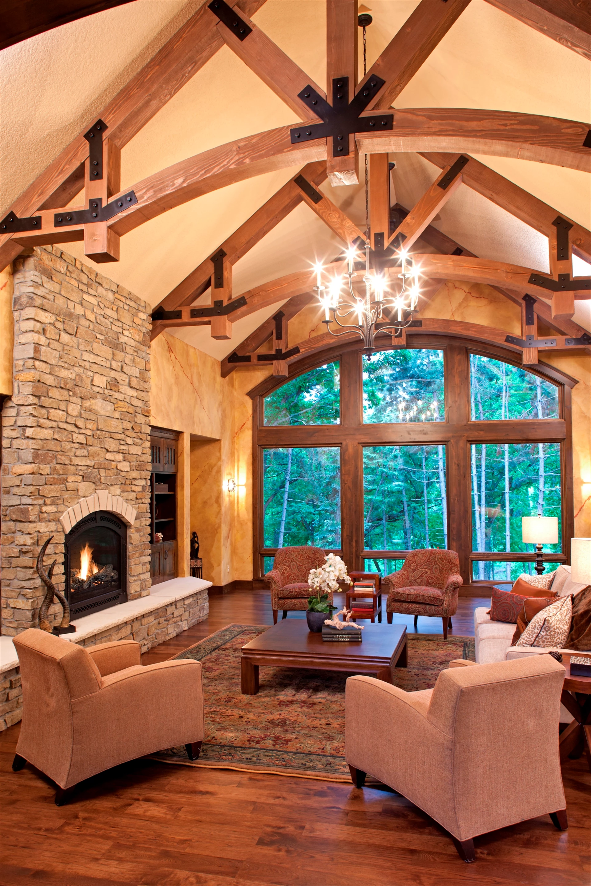 This beautifully crafted home provides an inviting living atmosphere with its cozy and rustic lodge-inspired living room. Complemented with a rustic fireplace and plush seating, it's the perfect spot to curl up with a cup of coffee and savor the warmth of a cold winter day. Filled with natural light, this home boasts a range of modern amenities and provides the ideal balance of rustic elegance and contemporary comfort.