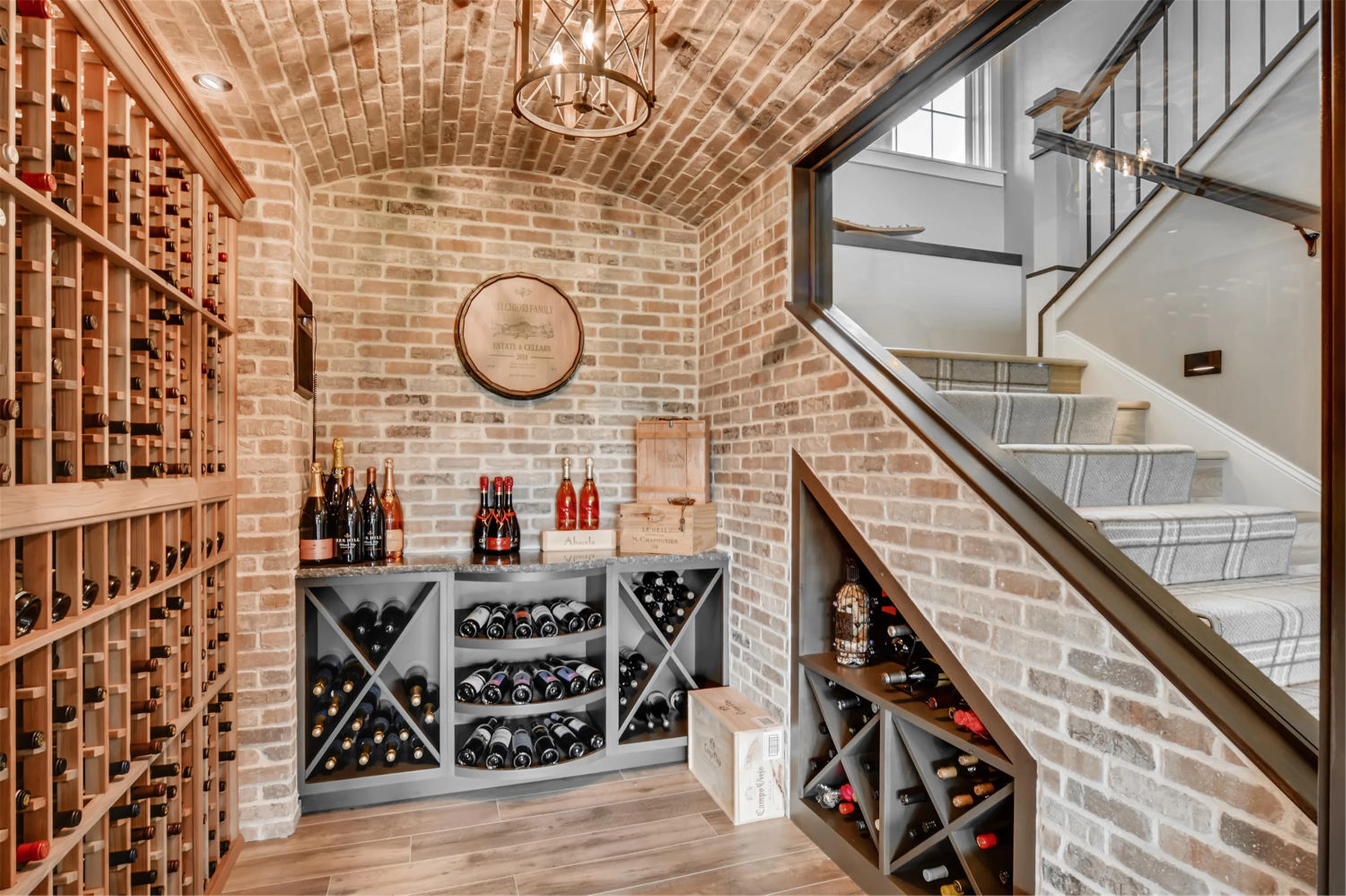 This beautiful home offers an impressive and luxurious entryway with its vaulted ceilings. Highlighted by natural light, the entryway makes an immediate statement of grandeur and elegance. The spacious interior strengthens the feeling of luxury, and features amenities such as a wine cellar and upgraded kitchen. This home is the perfect combination of beauty and comfort.