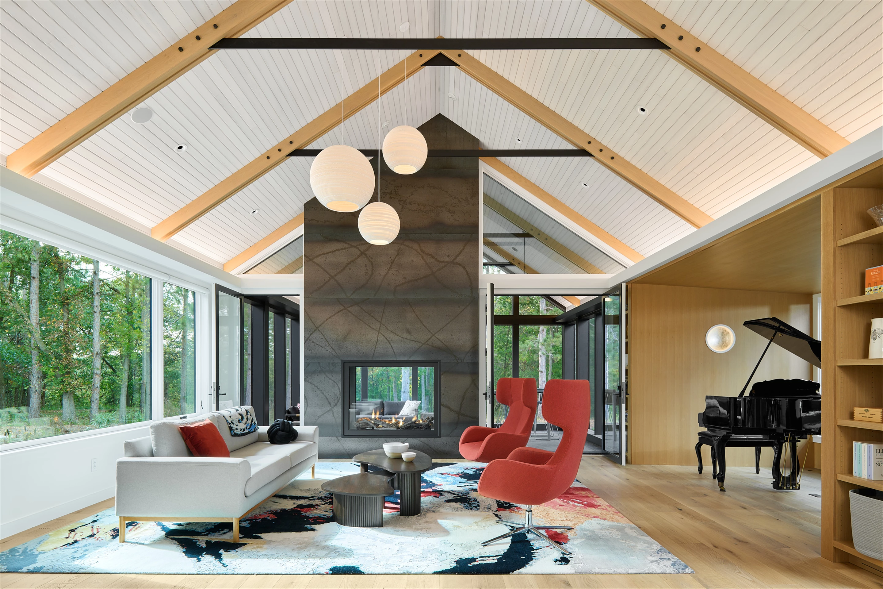 This four-season porch blends year-round comfort with timeless charm, anchored by a stunning stone fireplace. Wrapped in natural light, it’s the perfect retreat for slow mornings, evening gatherings, and everything in between.