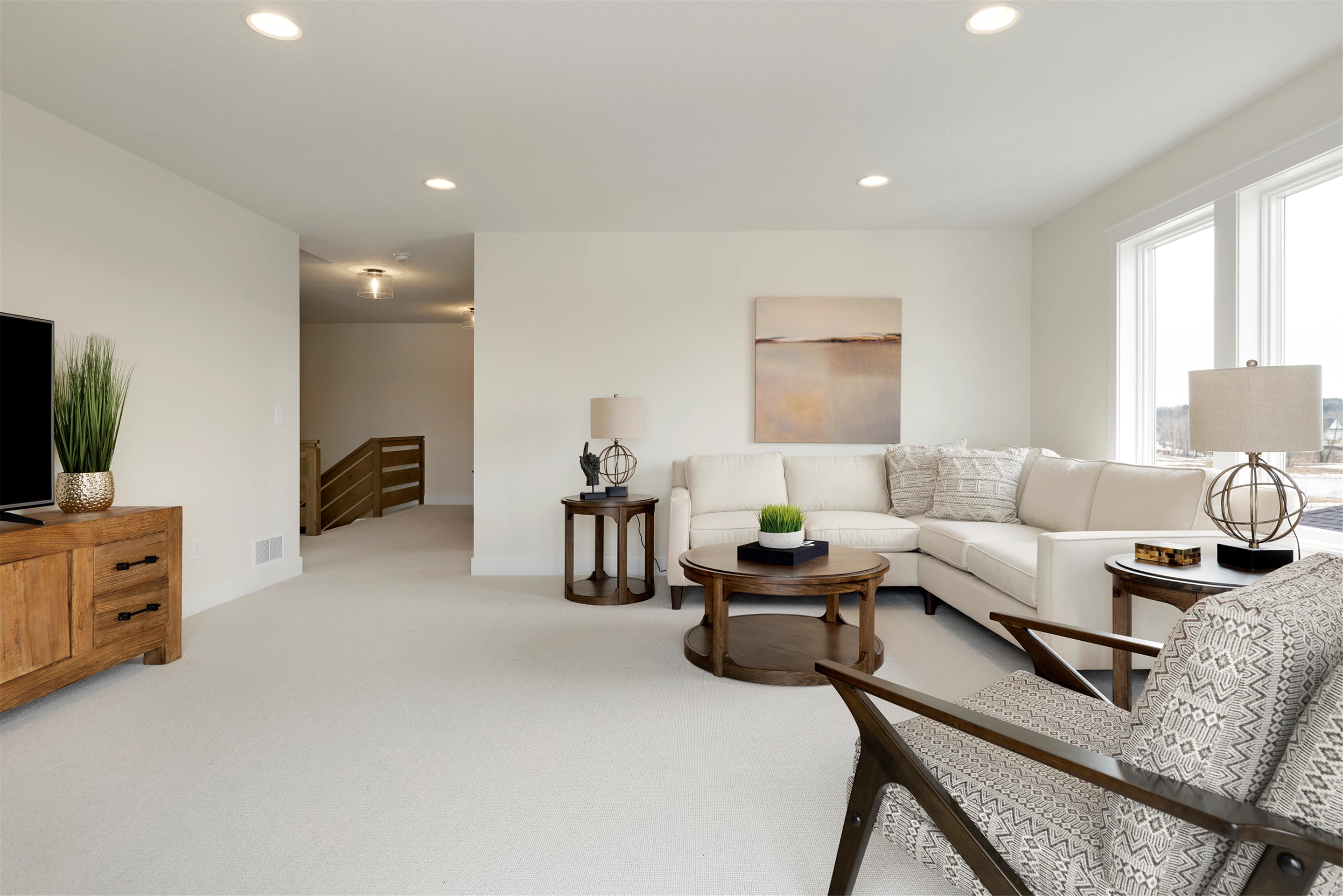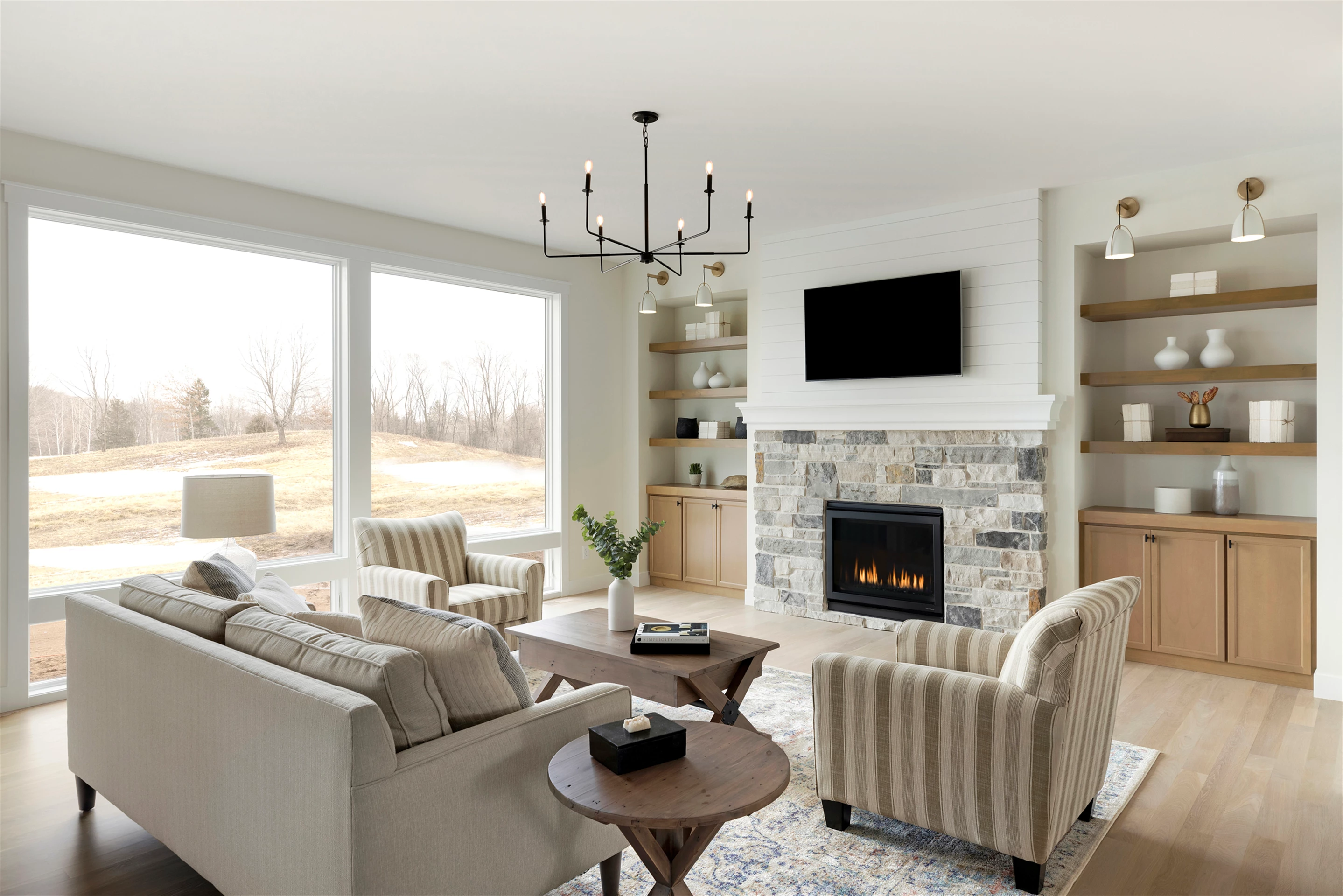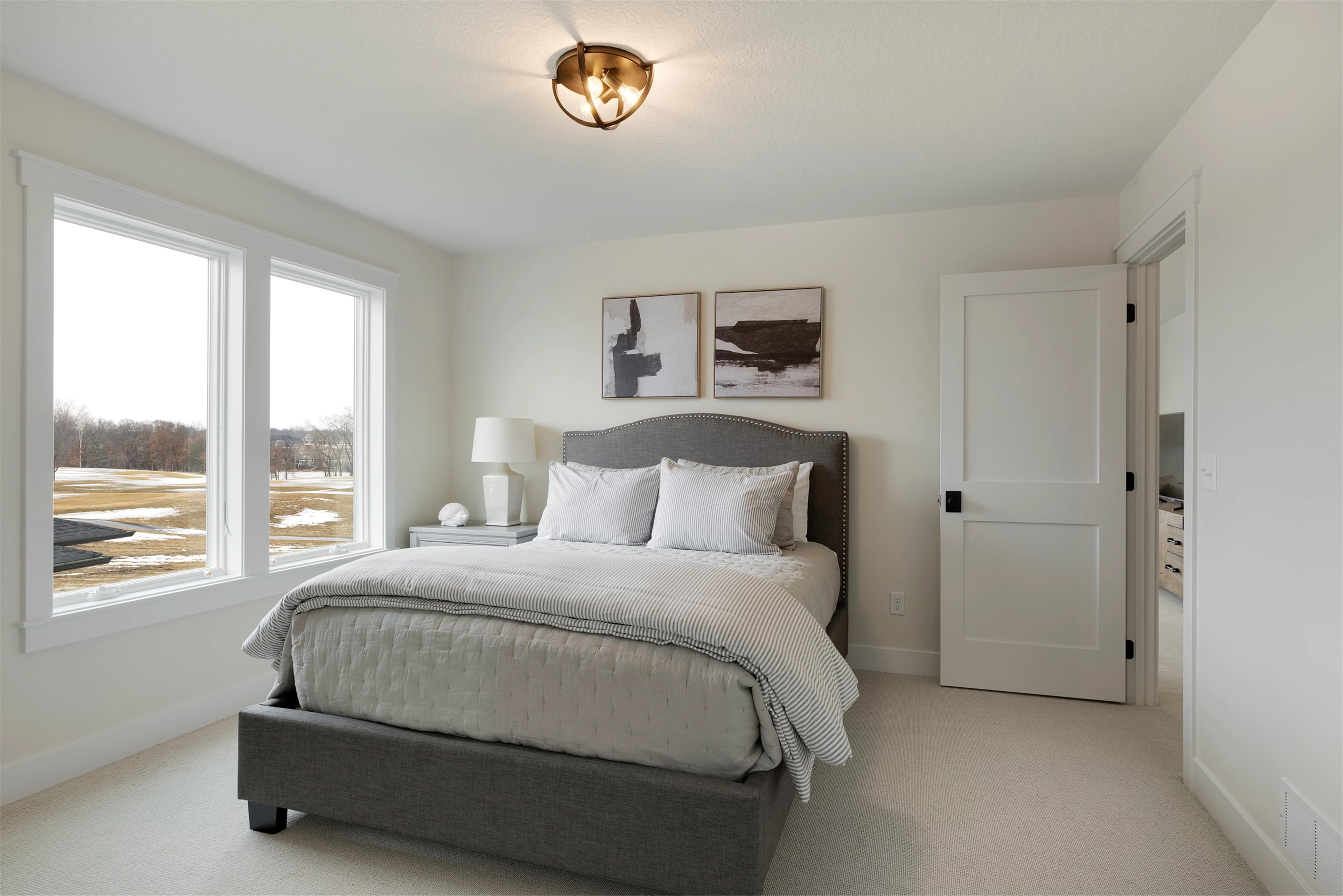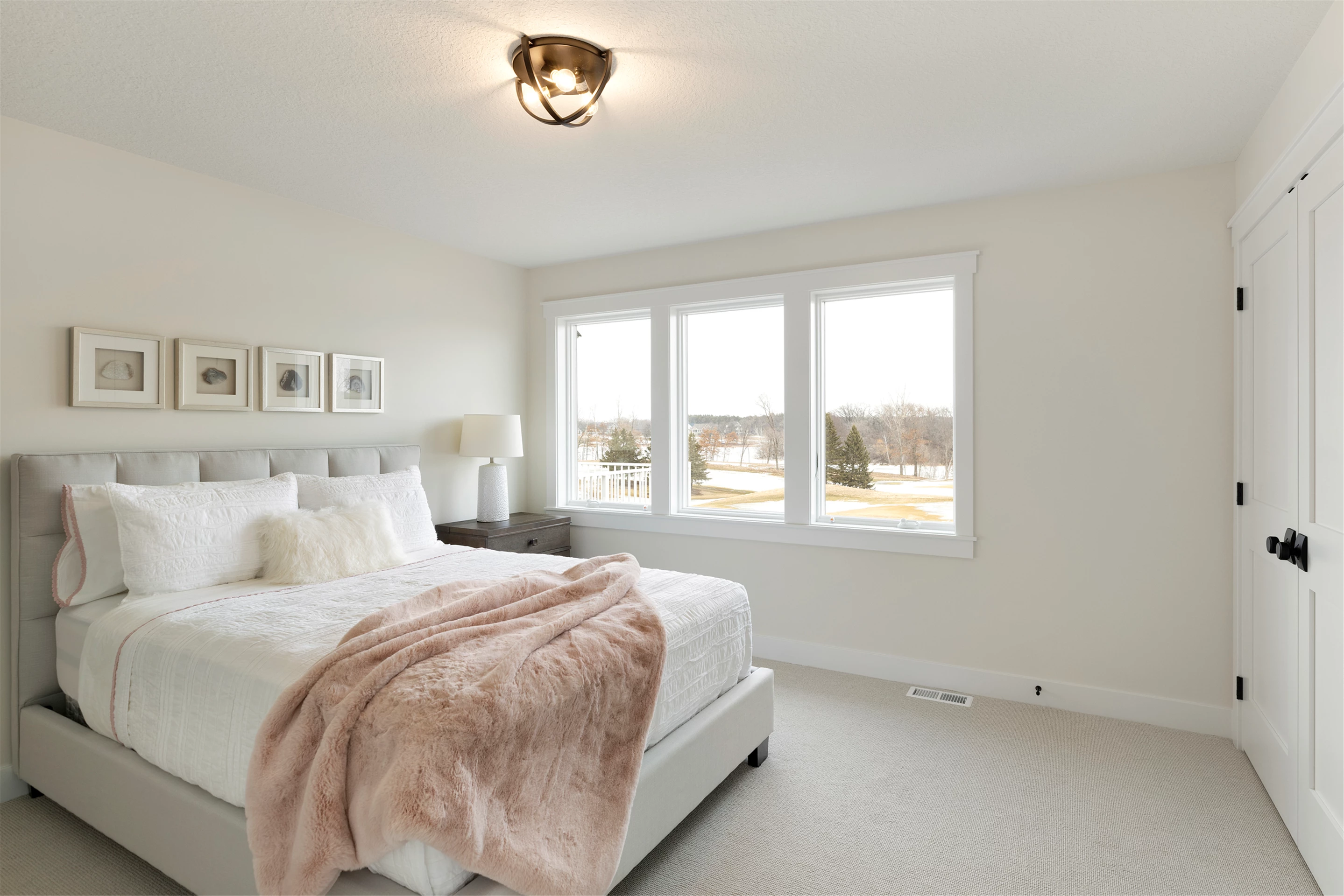 The Scandi-Modern Cottage offers guests an idyllic retreat with a breathtaking view. It features a 2nd floor deck walk out with an unbeatable view of Horseshoe Lake and the Royal Club golf course. This is the perfect setting for stunning daily views to make memories with the whole family.
