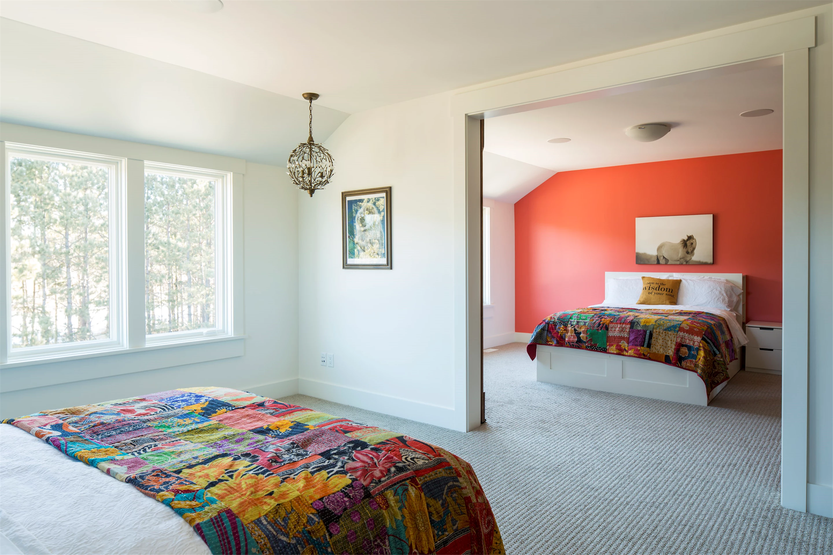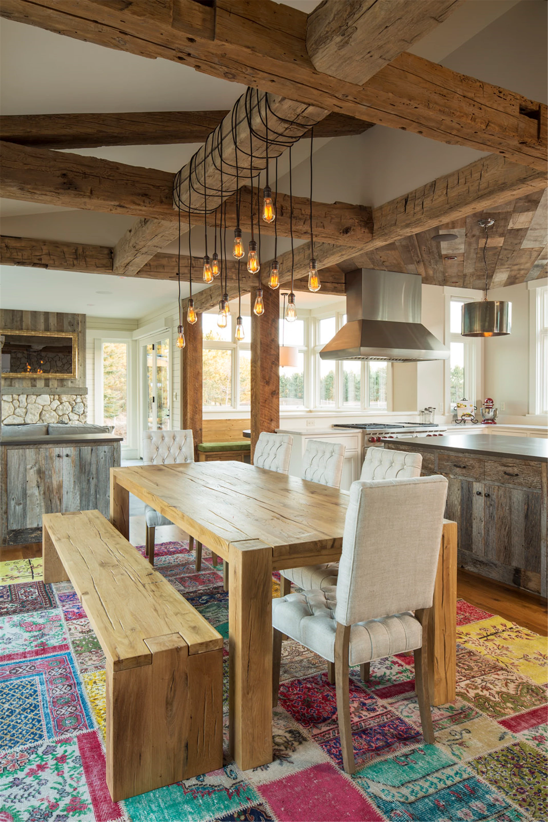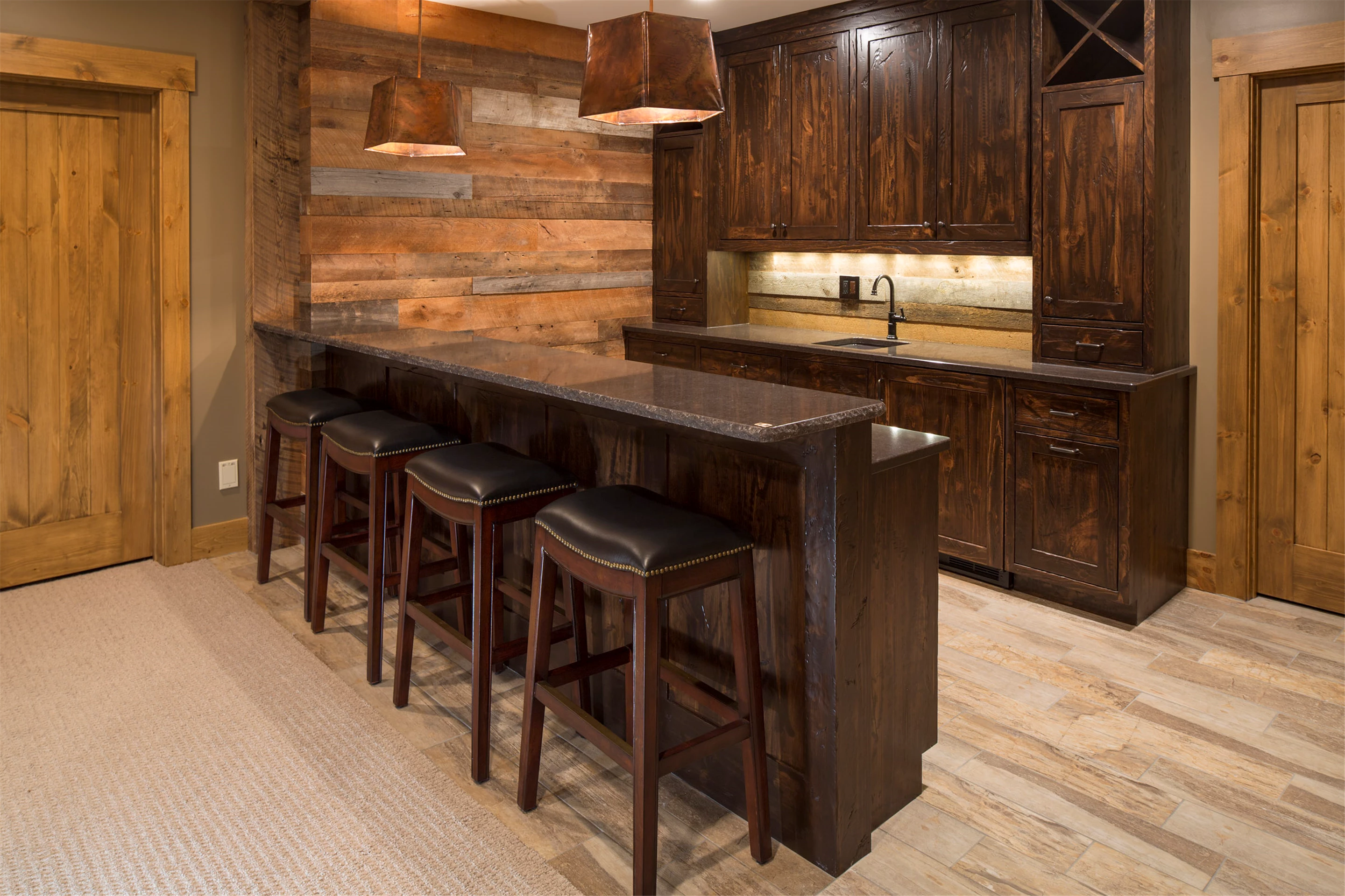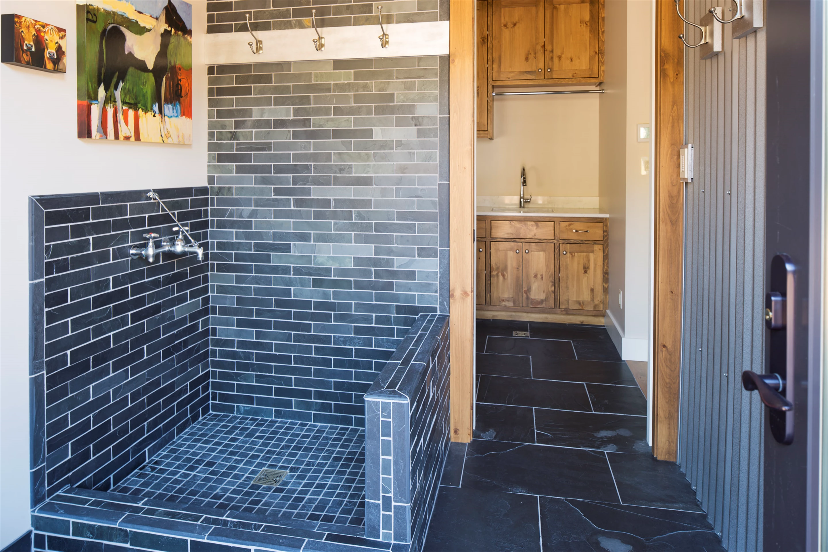 With four bedrooms, six bathrooms, 5,705 square feet, this modified two-story features a stone and cedar exterior that is a perfect counterpoint for the steel roofing and rusted corrugated accents. Just a breezeway away is the horse-barn-inspired garage with a yoga studio above plus plenty of outdoor living spaces. Four stone fireplaces create a warm ambiance throughout the residence. Life in the country is accommodated well by a tack room including a pet and boot washing area. Graceful application of reclaimed barn wood and corrugated steel winds a historic thread throughout and preservation oak flooring in varying widths spans the kitchen, dining, and great room beautifully. Secluded, yet conveniently located on the main level, the owners’ suite is just steps from the laundry, with his and her studies and a four-season porch. The yoga loft is perfectly Zen, with bamboo flooring, a sauna, and a bath.
