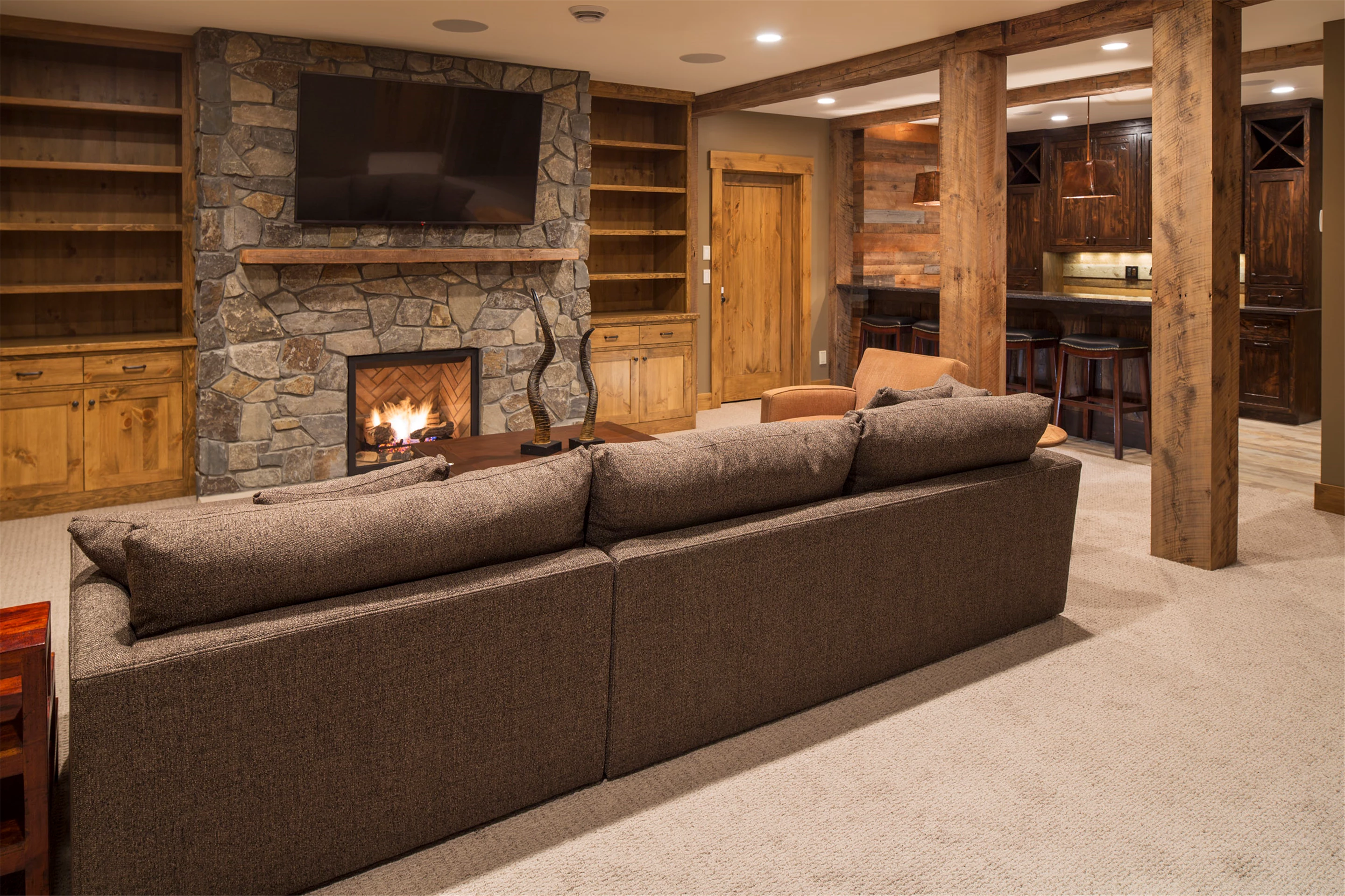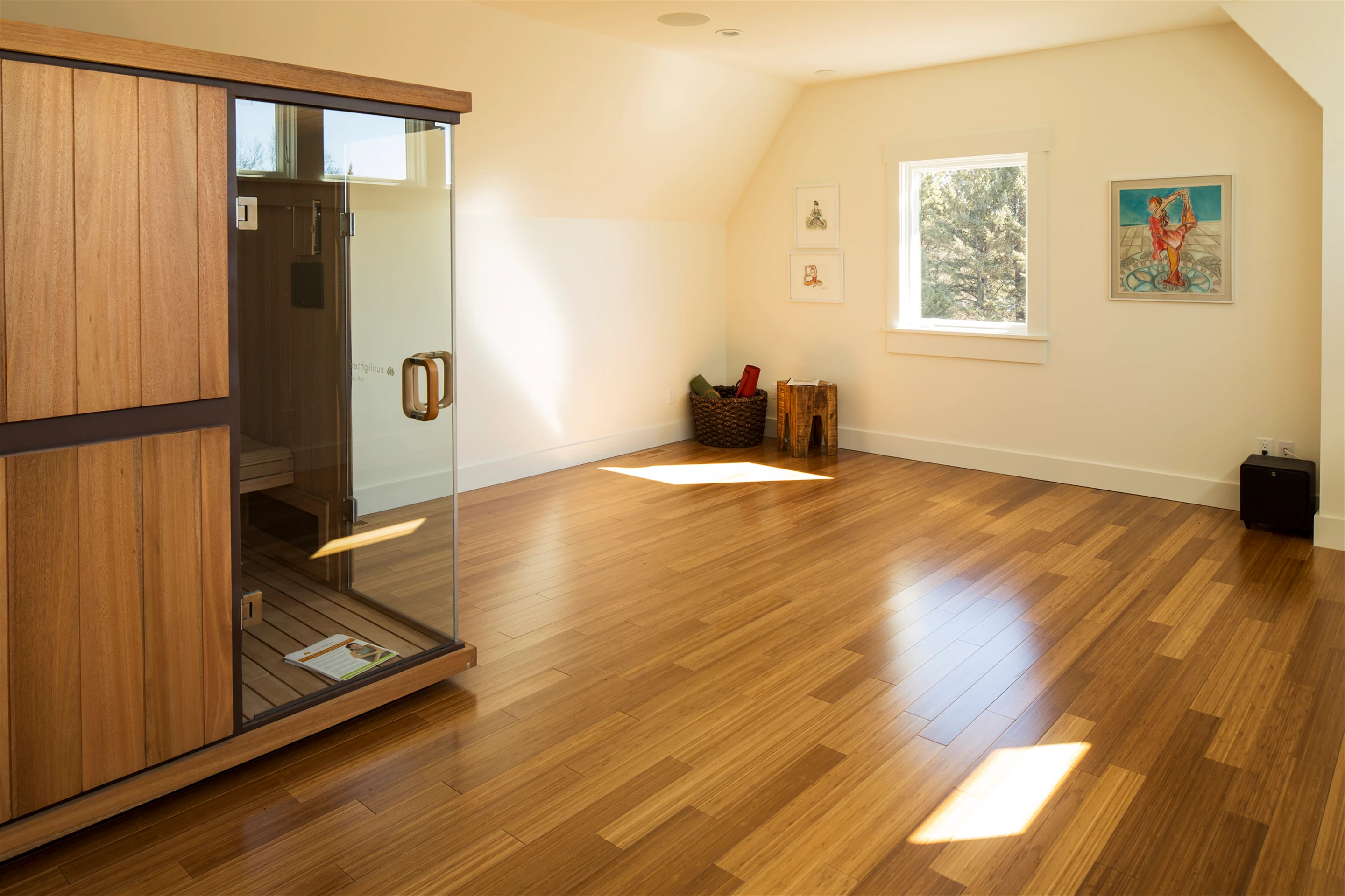 The Stillwater Equestrian Estate is a stunning estate with breathtaking details. The home features a wellness space, completed with windows for stunning views of the estate and a sauna to sweat it out after yoga. The homeowners never lack the opportunity to get moving and stay active in this estate, even during the crisp winter months!
