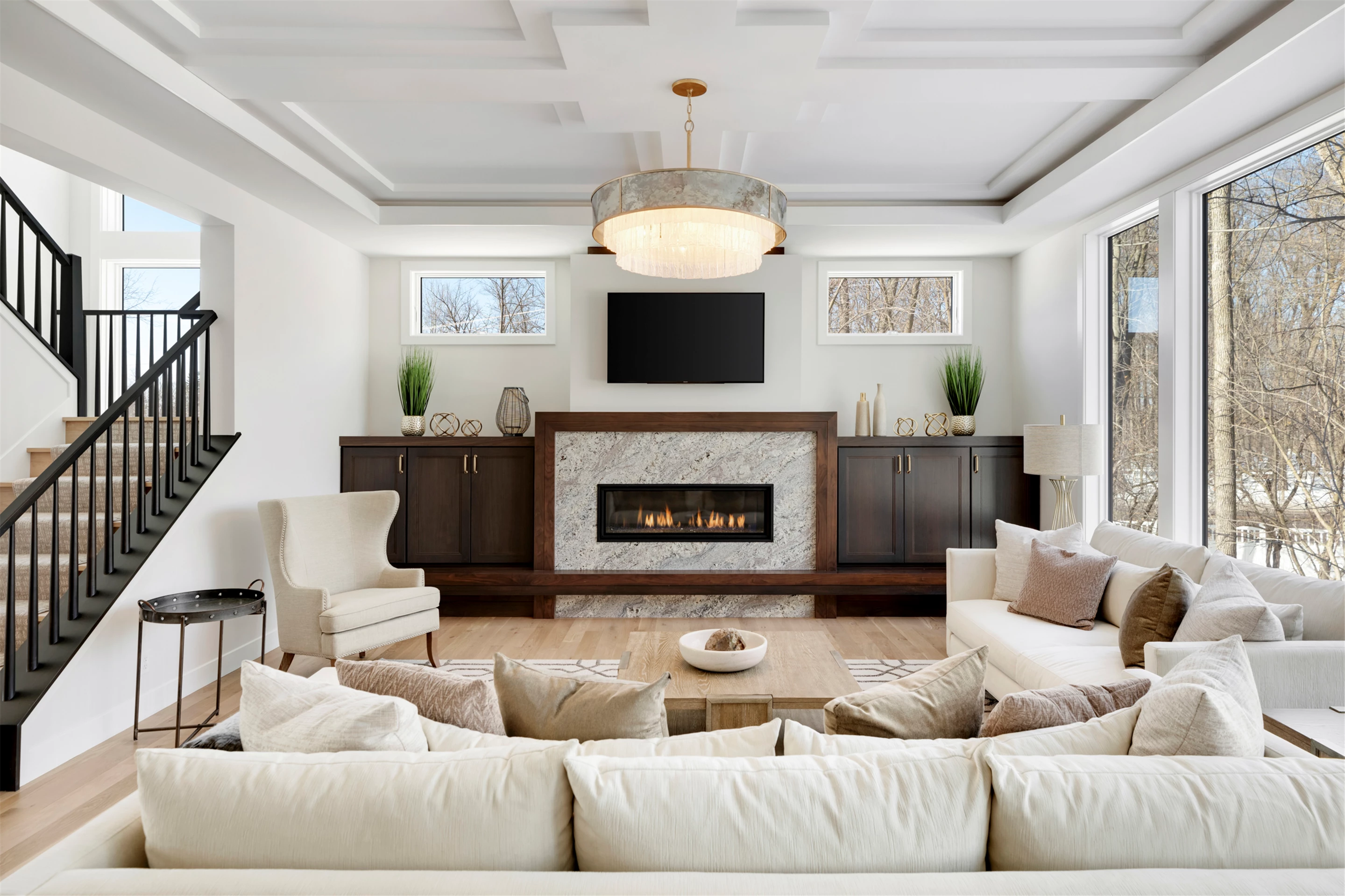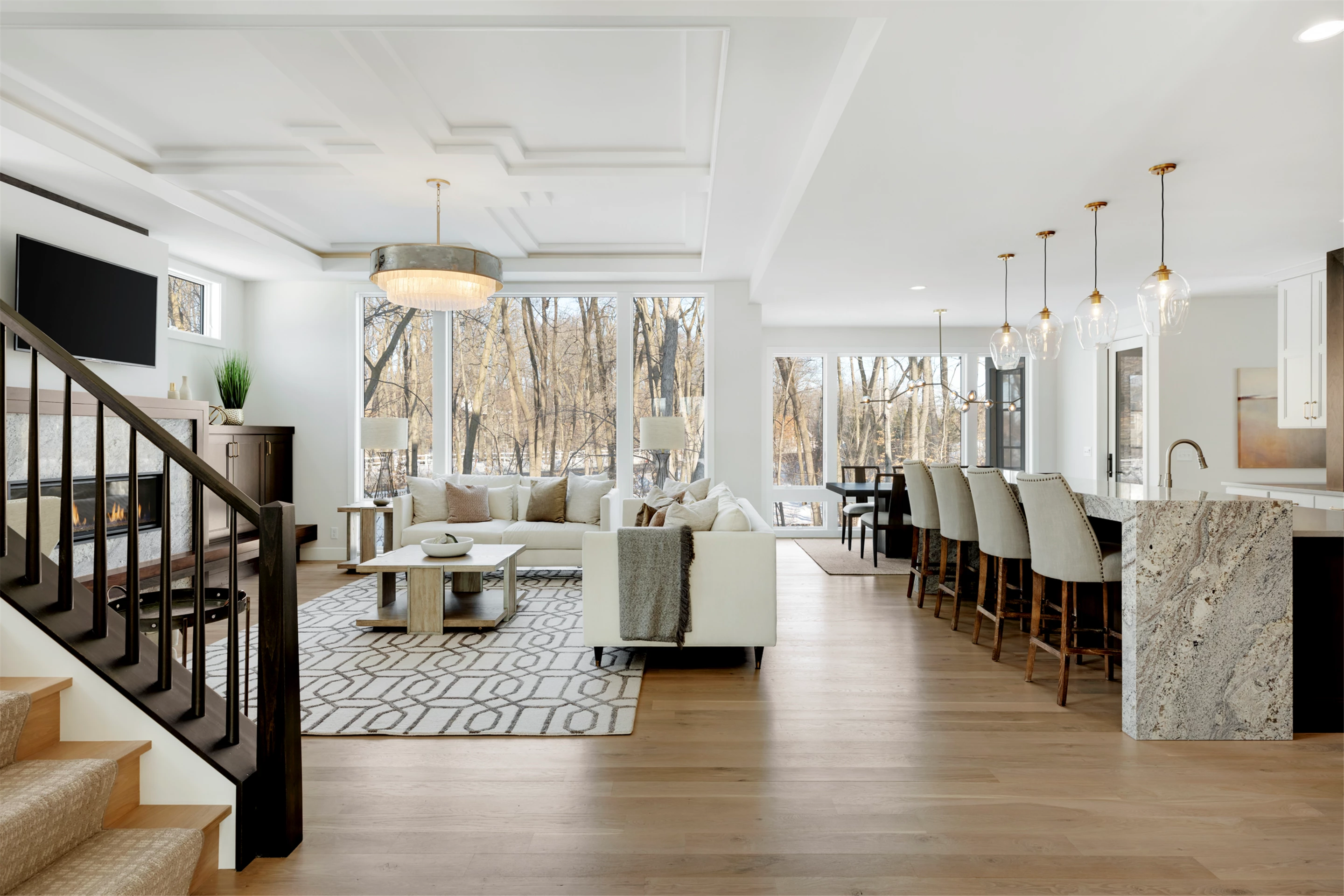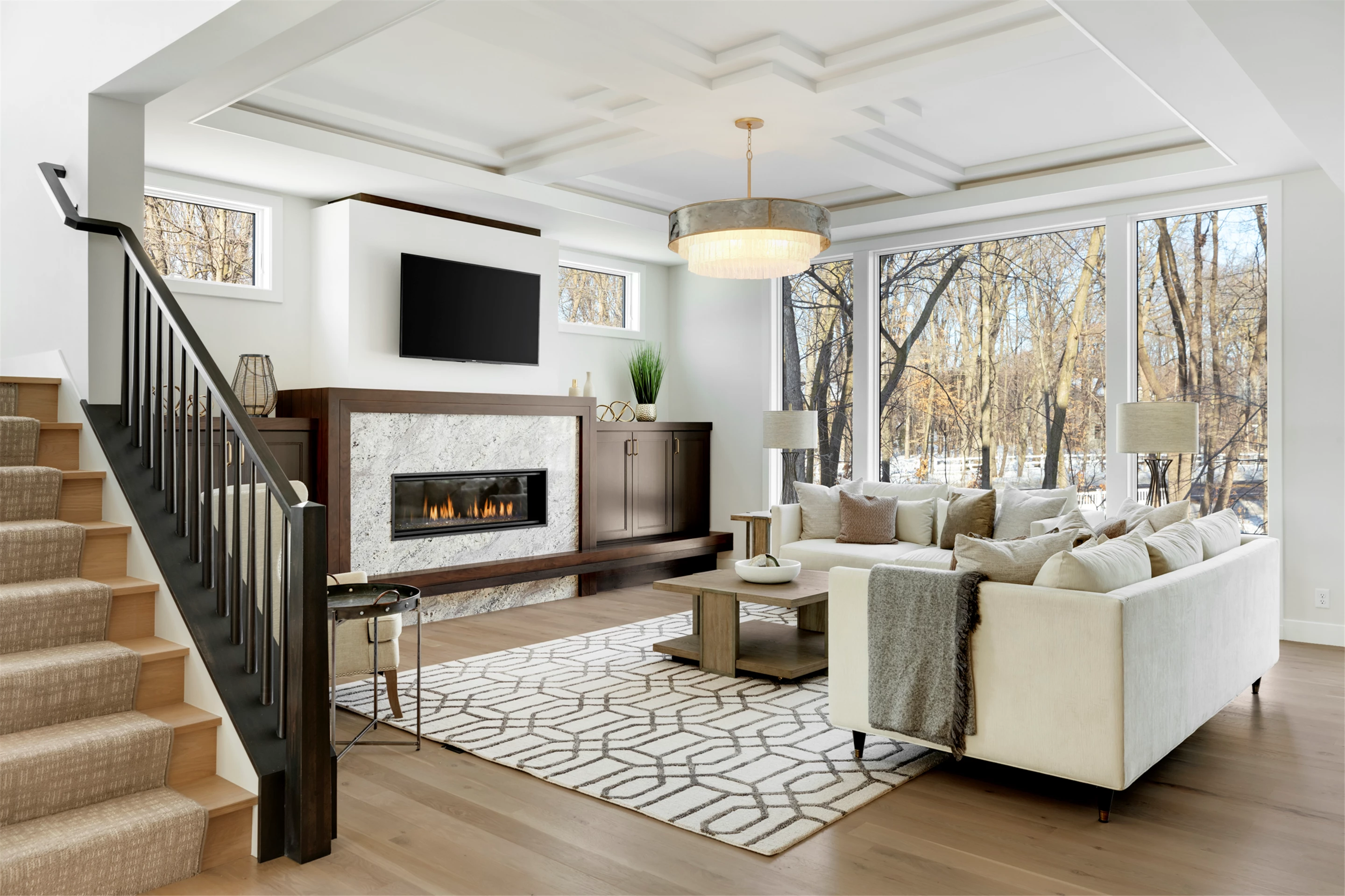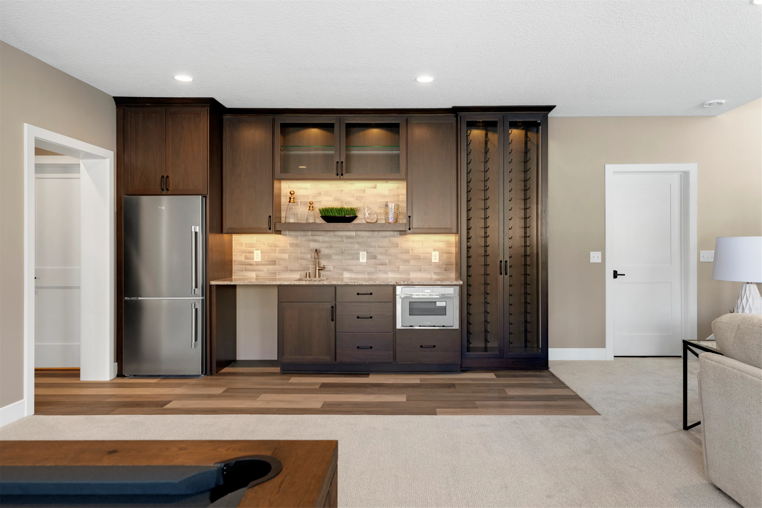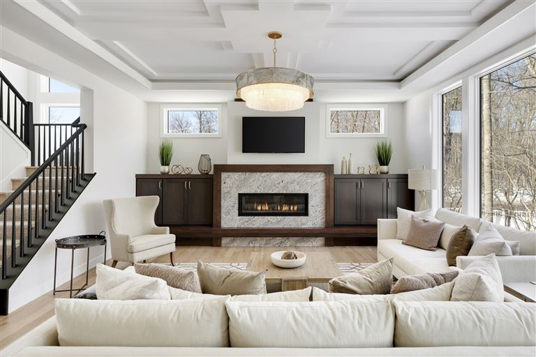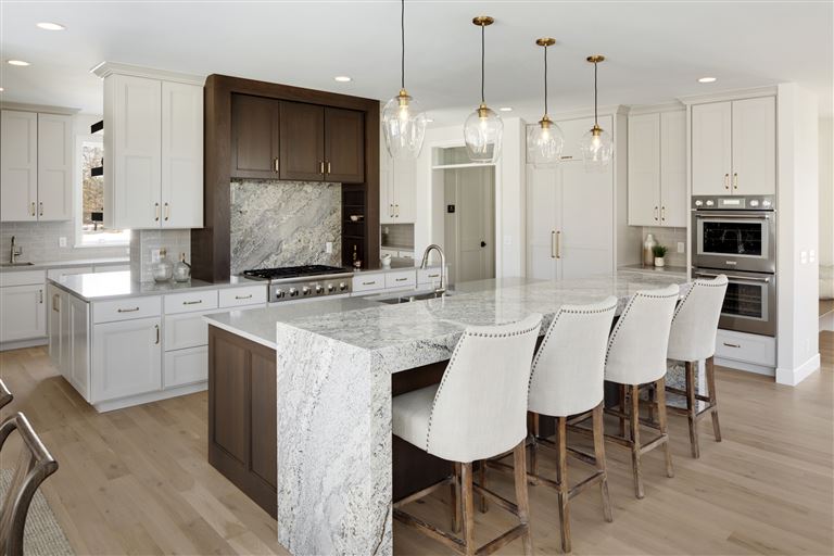 Just a stroll from the Medina Country Club is Hartman Home’s 2021 luxury model located in the exclusive Woods of Medina neighborhood. This Modern Tudor, two-story home is equipped with an oversized 3-car garage, with space for a workshop and extra storage. Main level highlights include walnut and painted cabinetry, a Cambria island with a raised 11-foot granite counter for dining, and wire-brushed, white oak flooring. The walk-through butler’s pantry features a built-in pocket office, floating shelving, and a functional coffee/wet bar. Cathedral ceilings adorn the 3-season porch furnished with Sunspace Windows and Trex flooring. The Great Room features a gas fireplace with a granite/walnut surround & built-in shelving. The basement features an additional bedroom, family room, and wet bar.