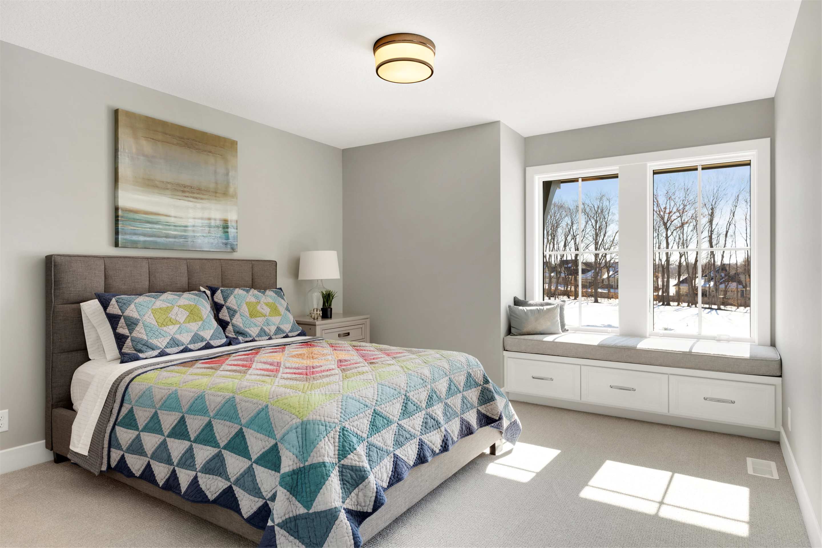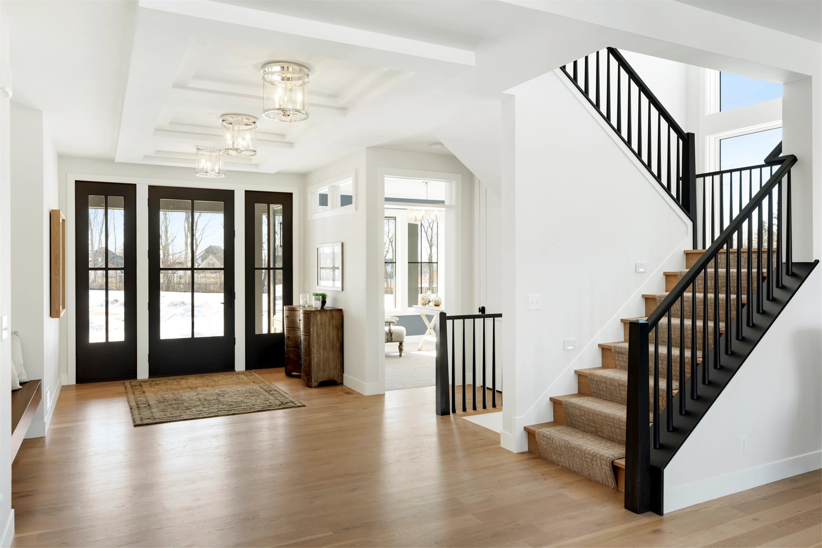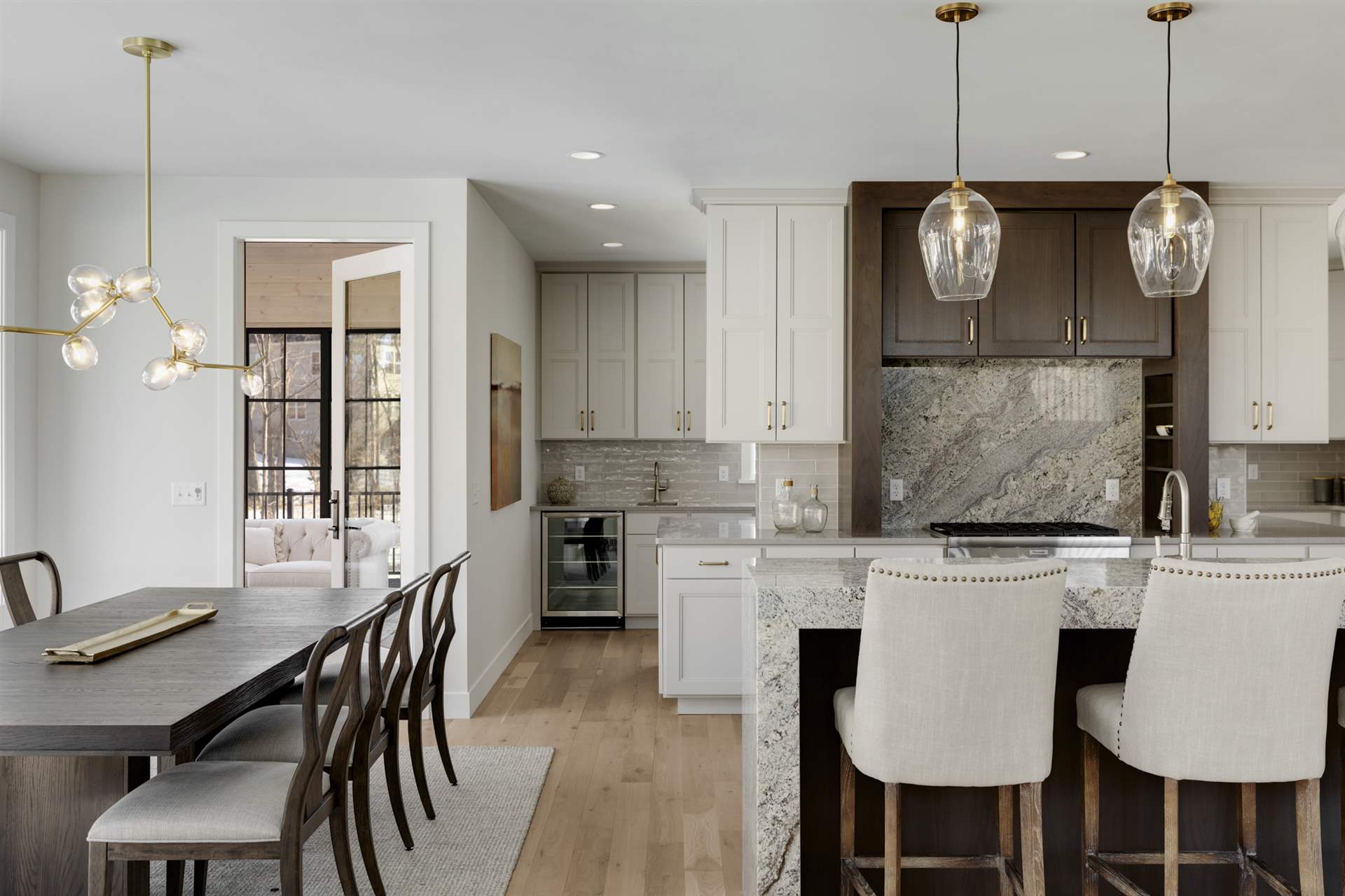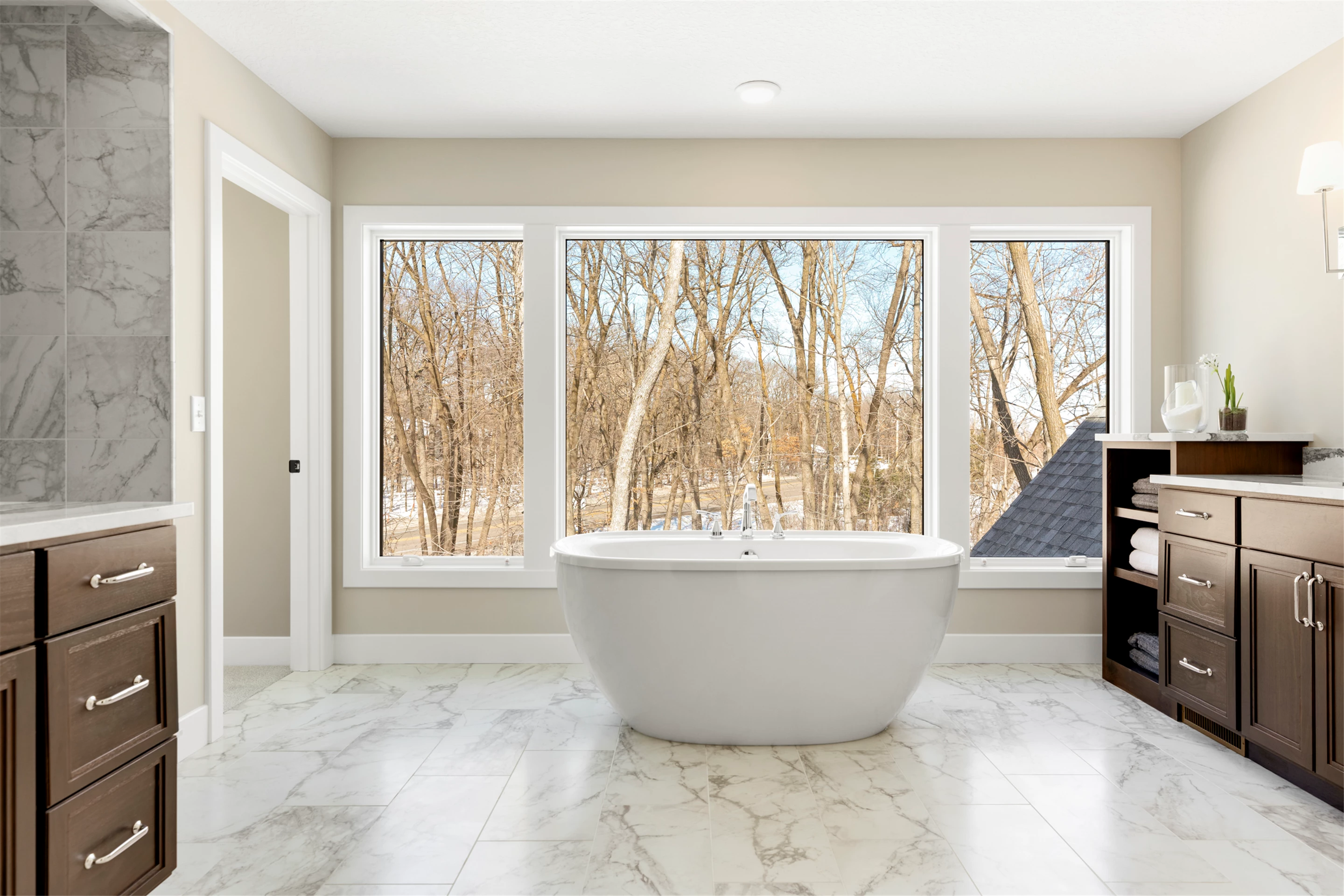 Just a stroll from the Medina Country Club is Hartman Home’s 2021 luxury model located in the exclusive Woods of Medina neighborhood. This Modern Tudor, two-story home is equipped with an oversized 3-car garage, with space for a workshop and extra storage. Main level highlights include walnut and painted cabinetry, a Cambria island with a raised 11-foot granite counter for dining, and wire-brushed, white oak flooring. The walk-through butler’s pantry features a built-in pocket office, floating shelving, and a functional coffee/wet bar. Cathedral ceilings adorn the 3-season porch furnished with Sunspace Windows and Trex flooring. The Great Room features a gas fireplace with a granite/walnut surround & built-in shelving. The basement features an additional bedroom, family room, and wet bar.